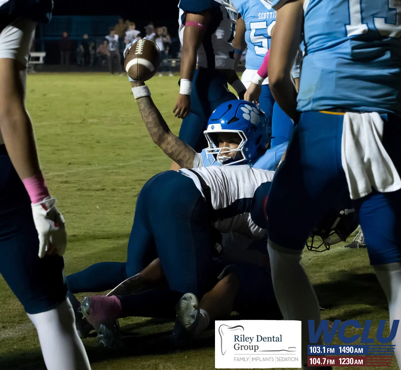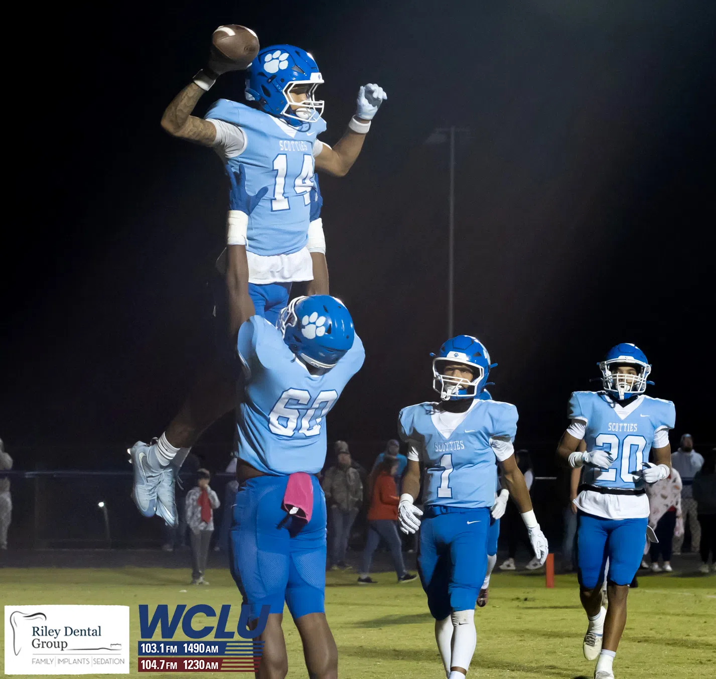 Glasgow’s Jerrick Martin celebrates after running for a touchdown against Edmonson County. The Scotties won, 57-0. Addie McCoy/For WCLU Sports