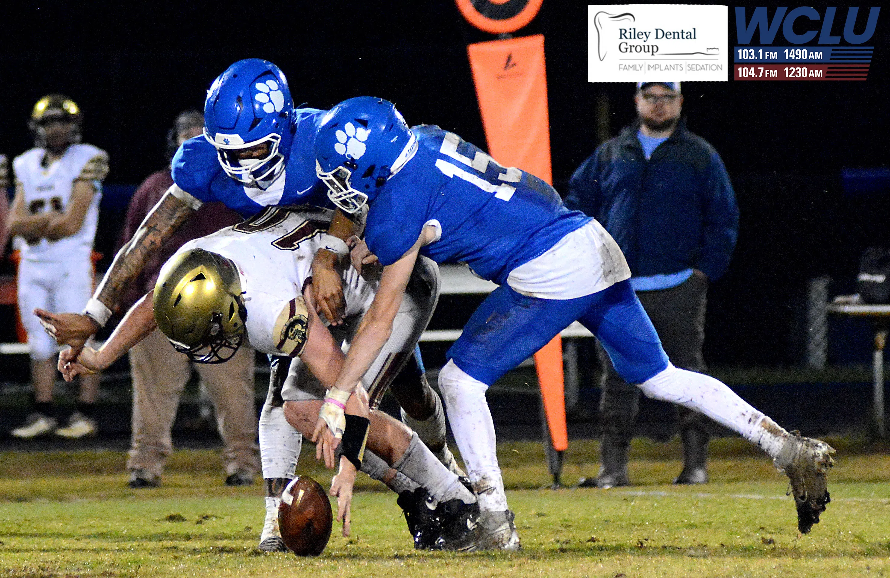 Glasgow’s Grayson Bartley and Jerrick Martin break up a pass against Webster County in the first round of the Class 3A Playoffs. The Scotties won, 56-0. Auggie Brown/WCLU Sports