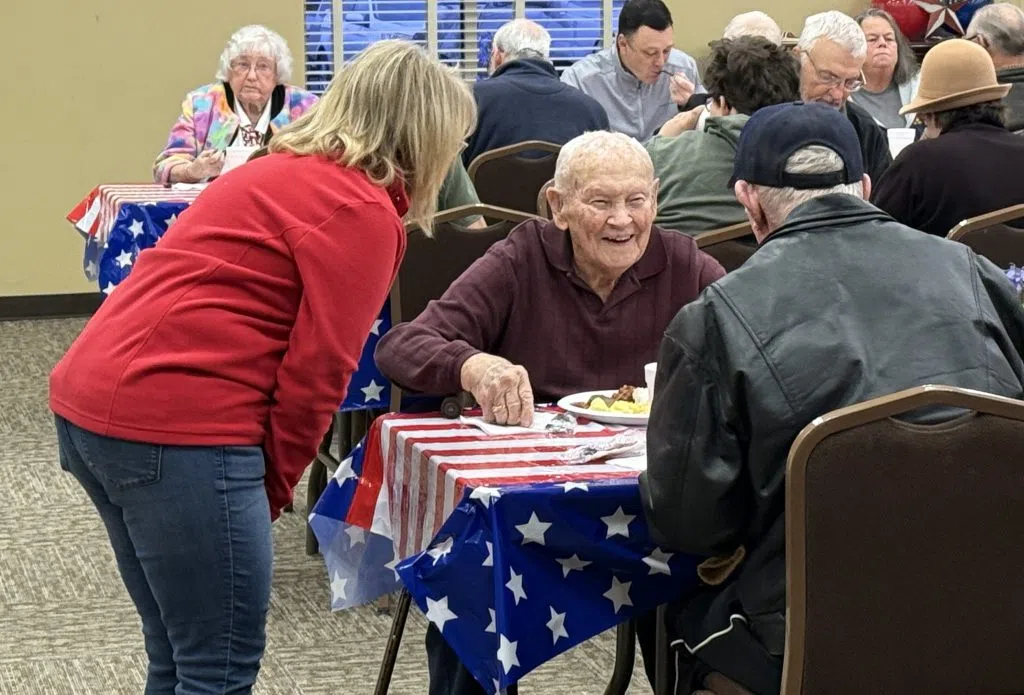 Veterans from various wars gathered and mingled while eating a free breakfast provided by South Central Bank. Michael Crimmins/Glasgow News 1