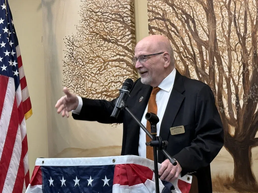 Glasgow Mayor Henry Royse and Barren County Judge-Executive Jamie Bewley Byrd (not pictured) spoke during the brief ceremony with Royse remembering the “sack breakfasts” people handed out to veterans during the pandemic when veterans couldn’t gather together in-person. Michael Crimmins/Glasgow News 1