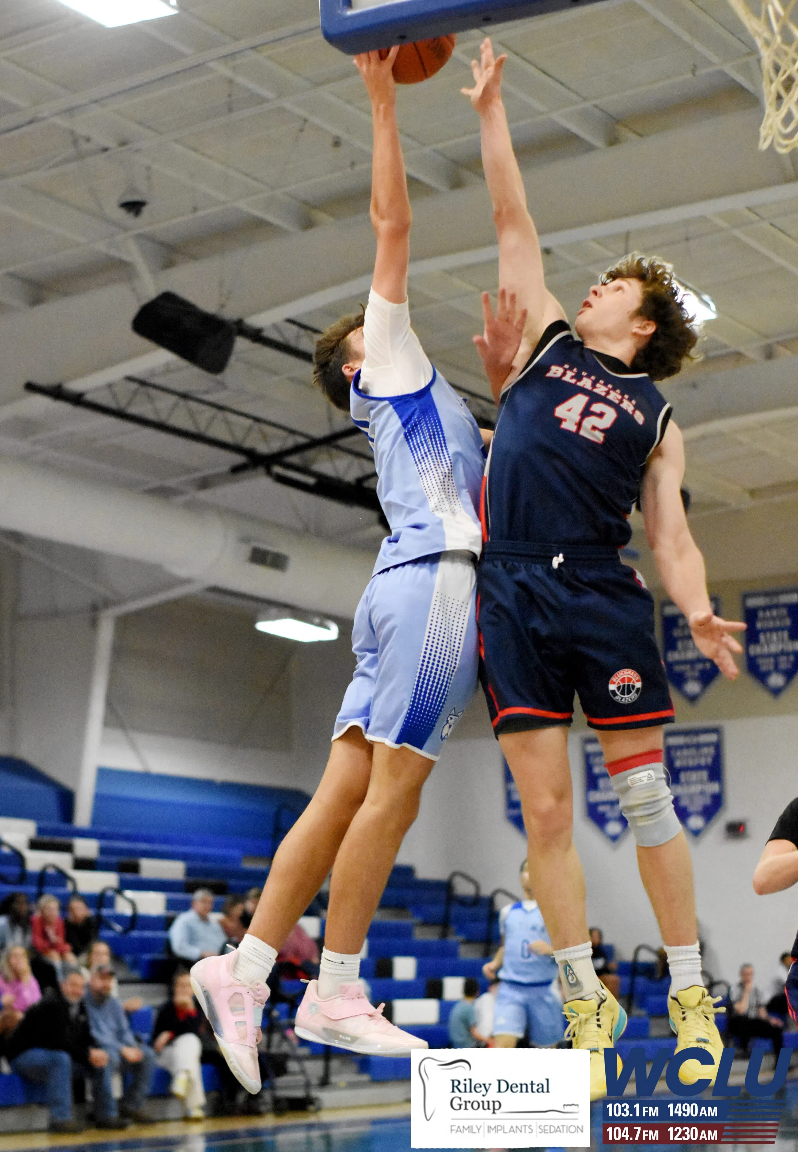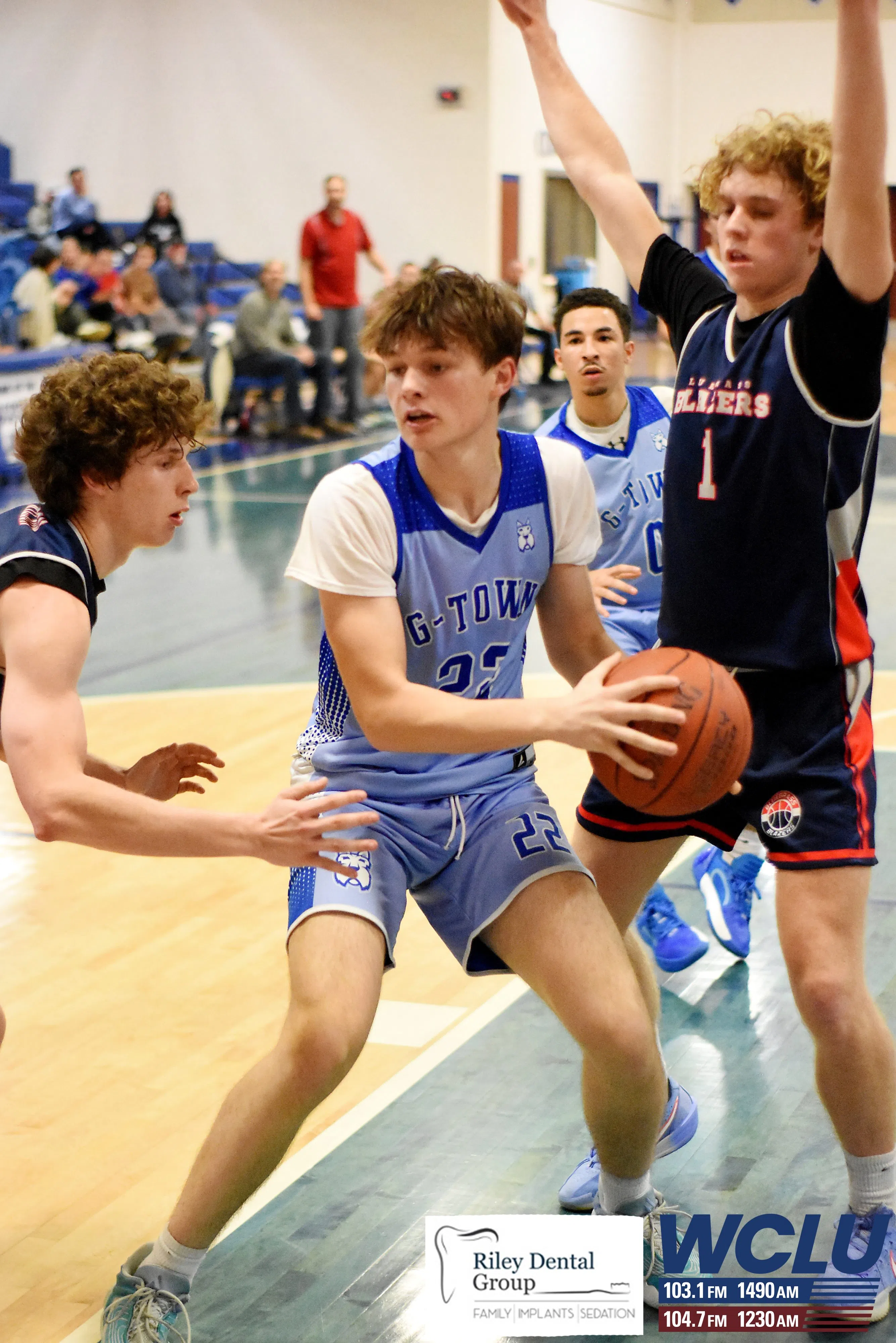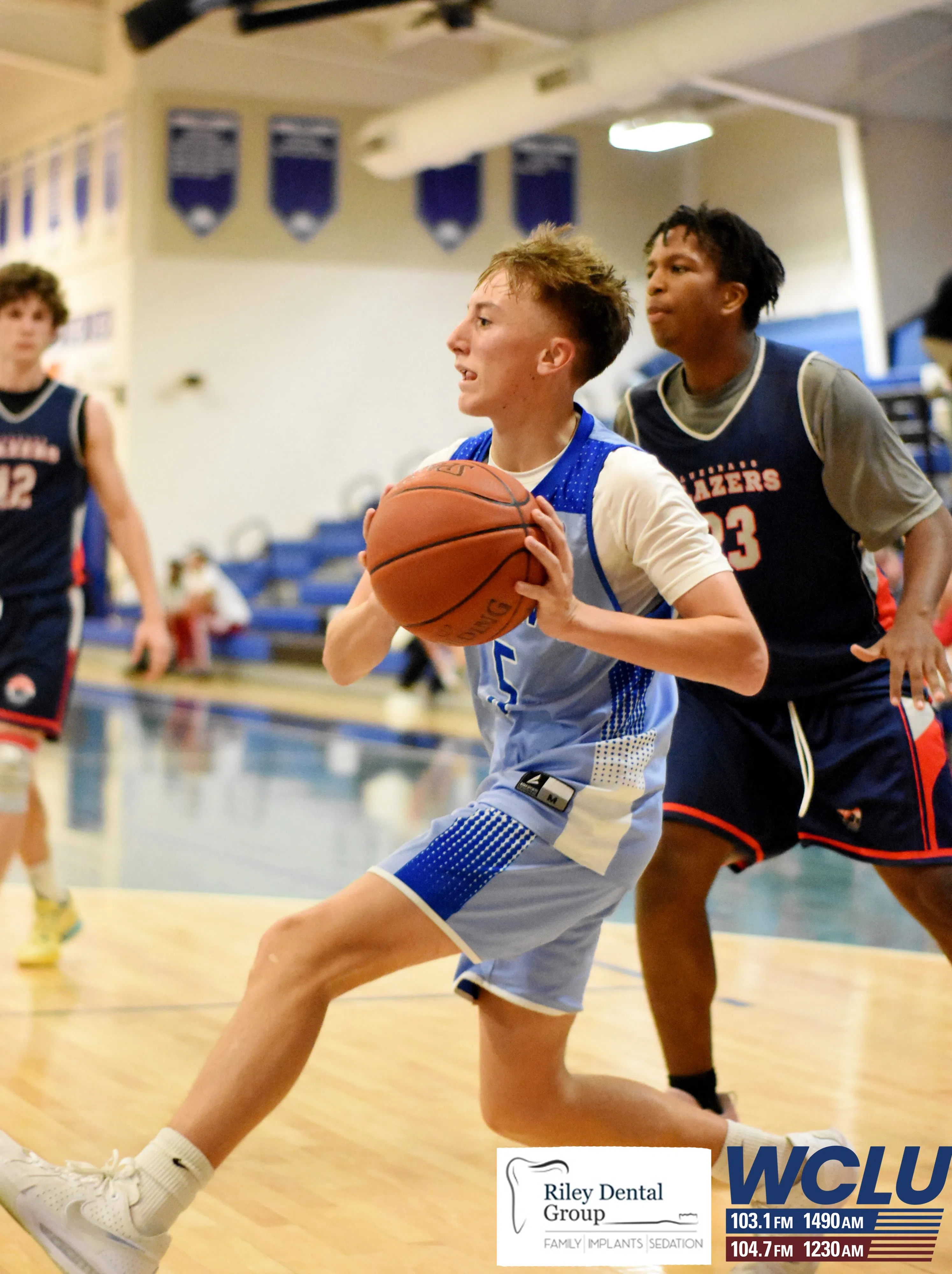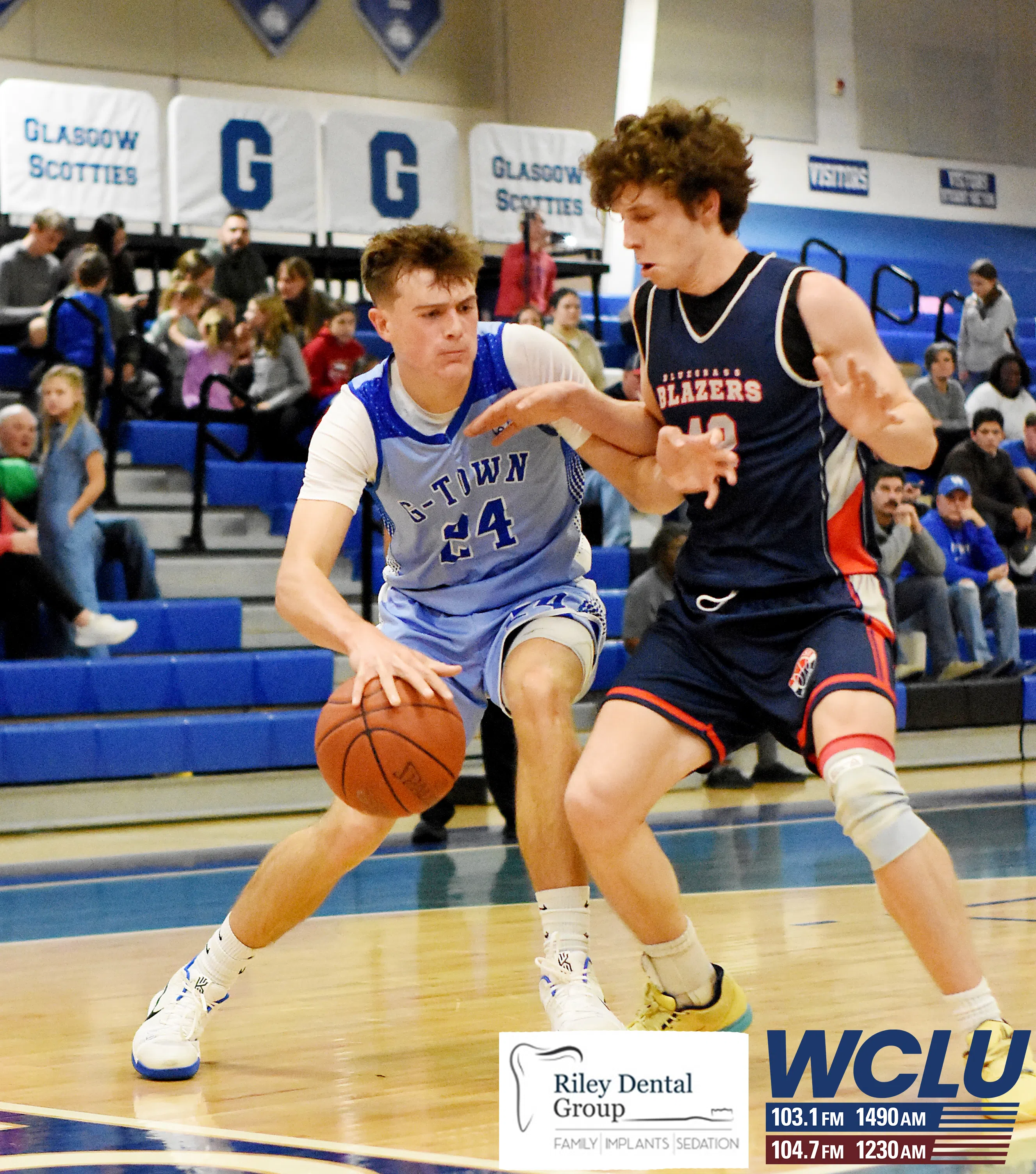 Glasgow’s Griffin Jackson drives the baseline against Bluegrass Blazers in a home scrimmage. James Brown/WCLU Sports
