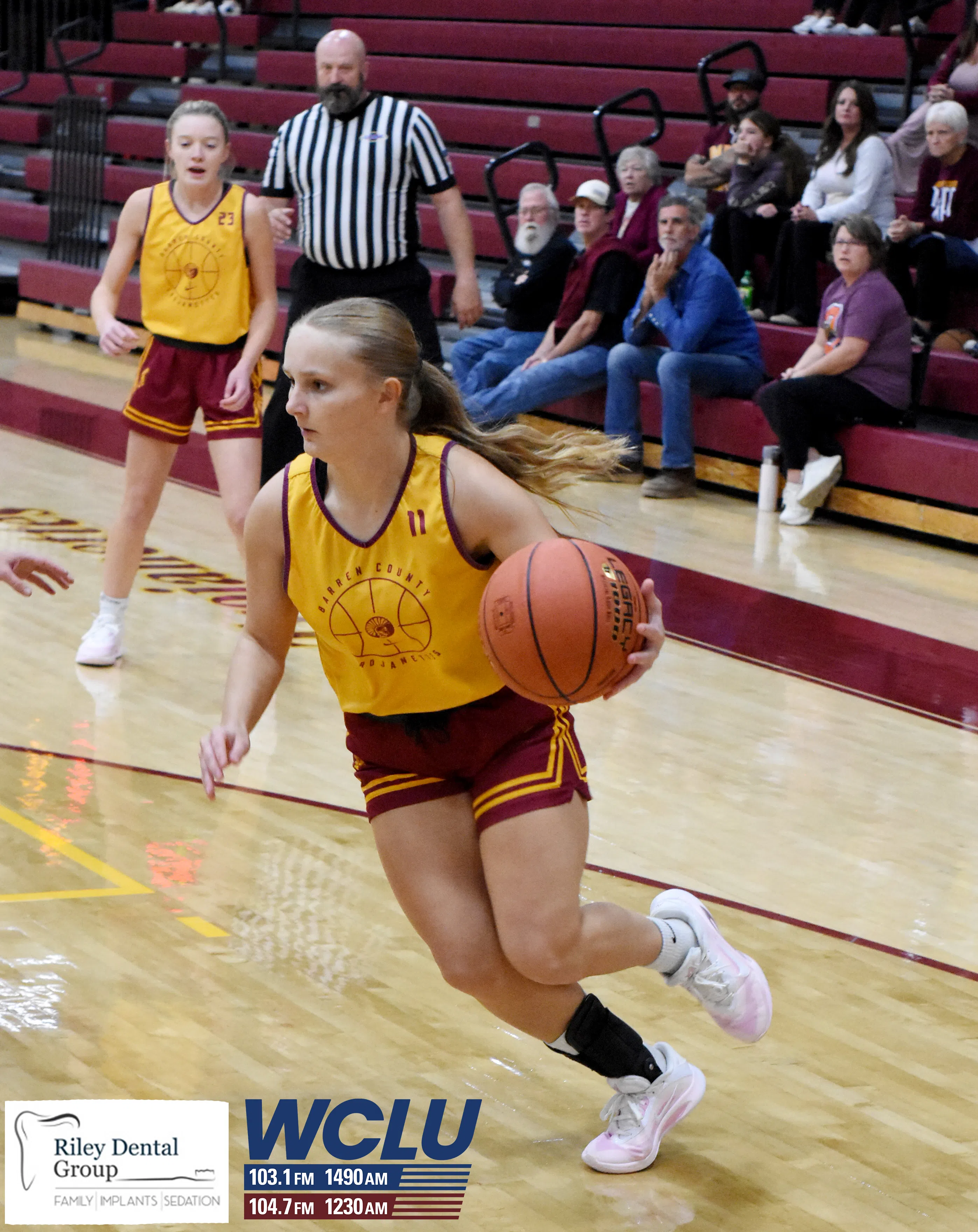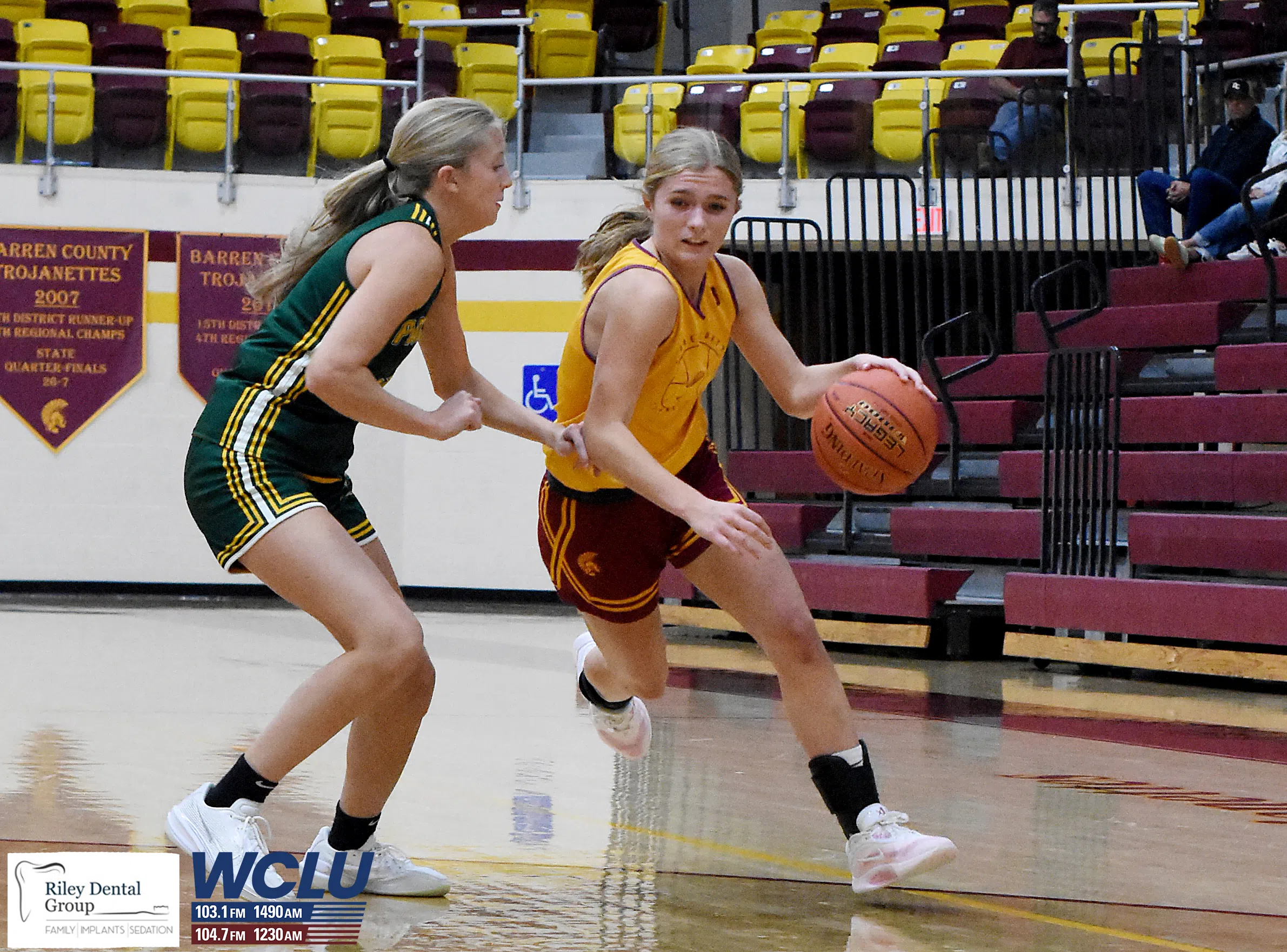 Barren County’s Addy Slagle drives against Cumberland County in a home scrimmage. James Brown/WCLU Sports