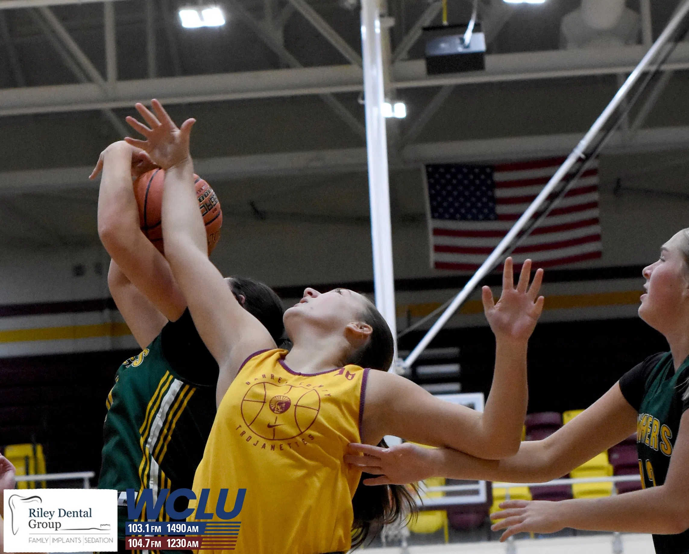 Barren County’s Karli Hagan battles for a rebound against Cumberland County in a home scrimmage. James Brown/WCLU Sports