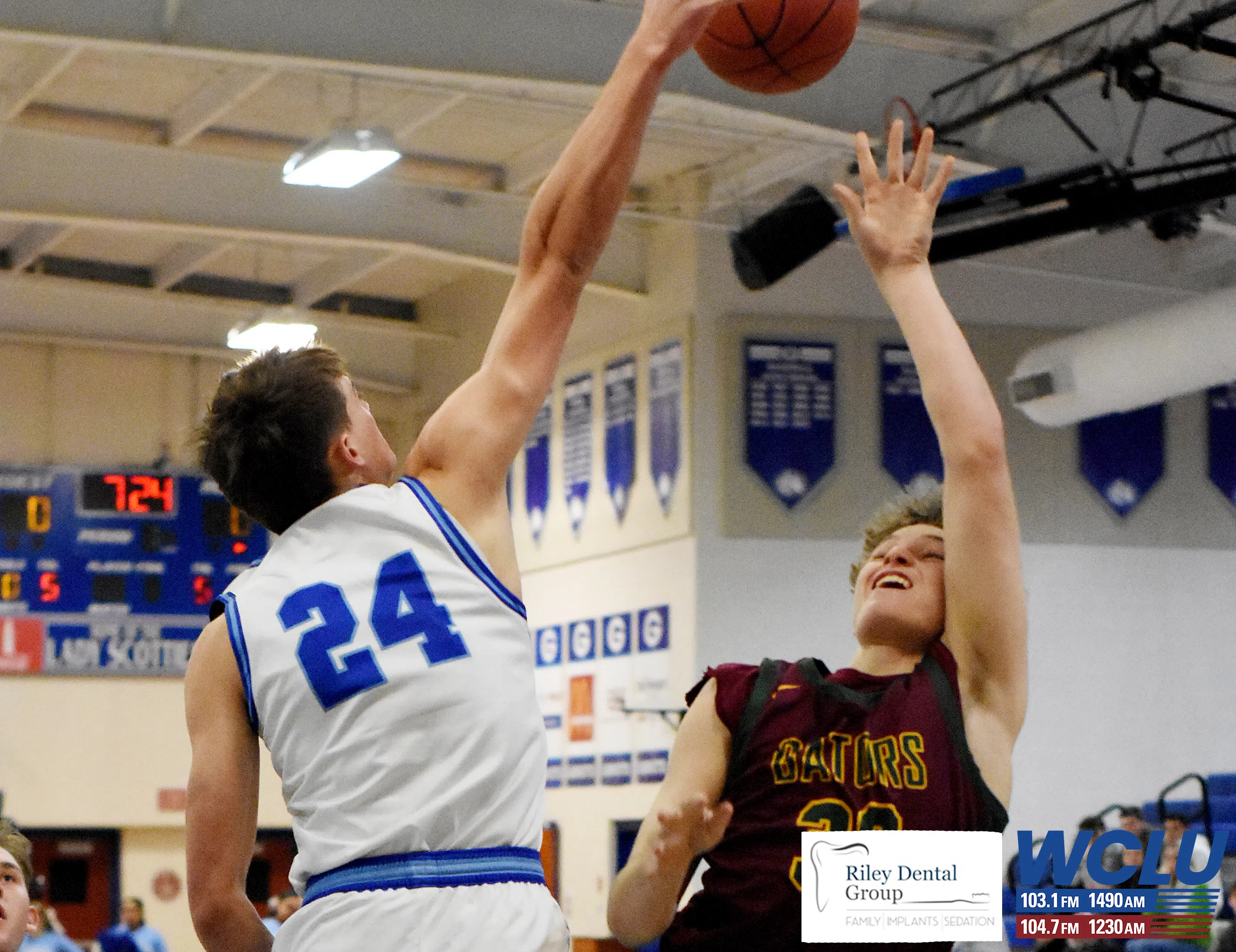 Glasgow’s Carter Hodges blocks a shot against Greenwood. The Scotties won, 65-62. James Brown/WCLU Sports