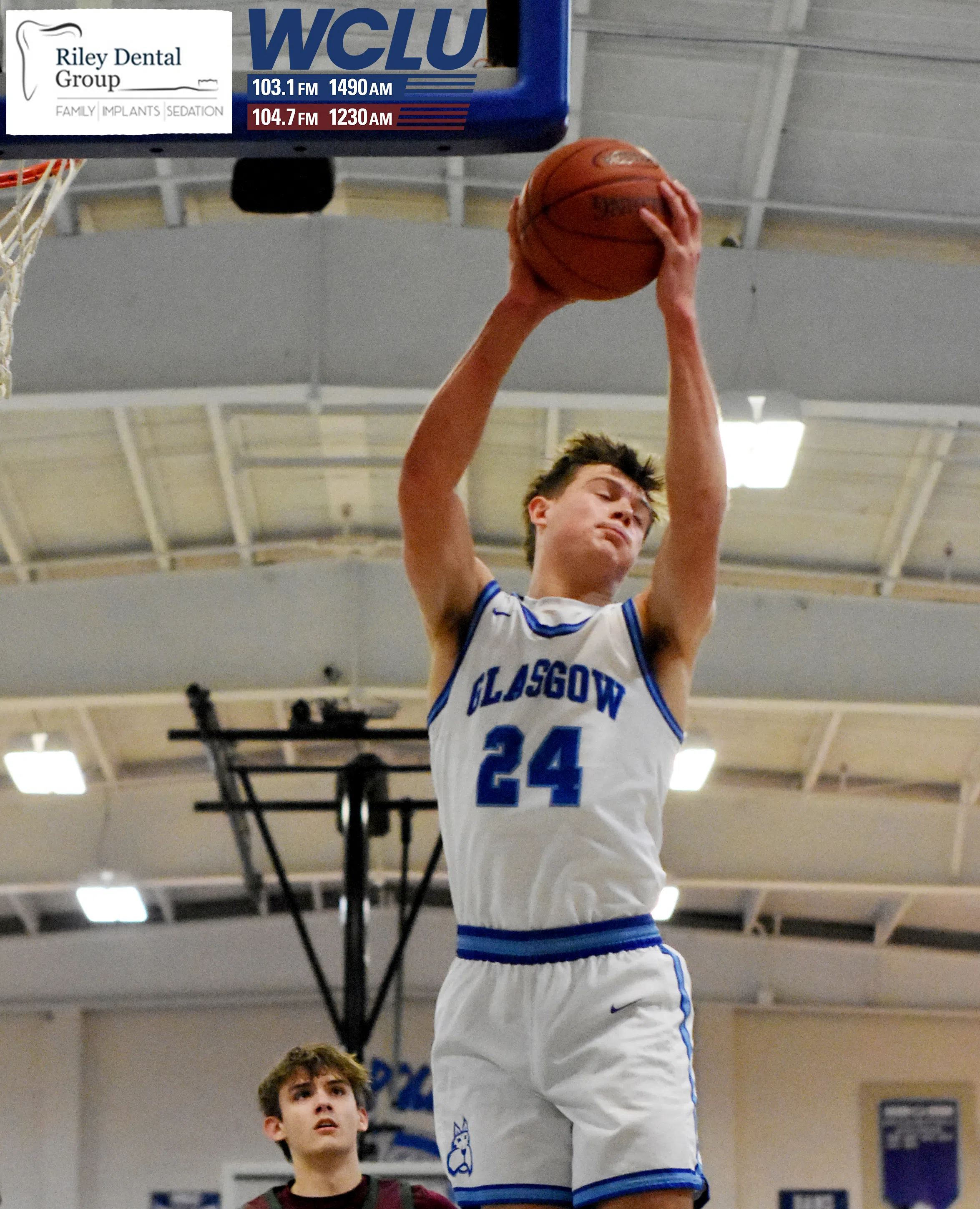 Glasgow’s Carter Hodges grabs a rebound against Greenwood. The Scotties won, 65-62. James Brown/WCLU Sports