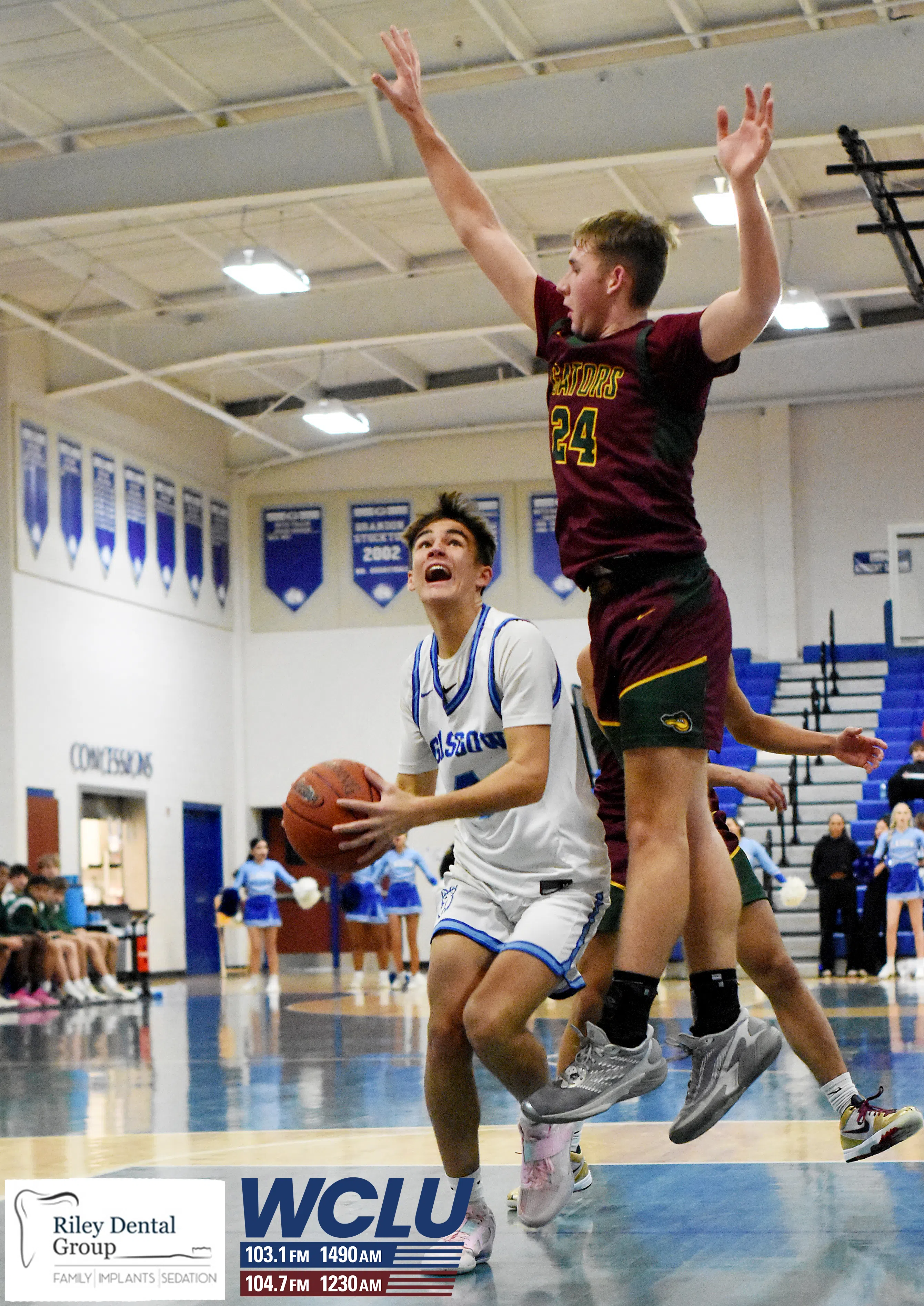 Glasgow’s Jackson Norris drives the lane against Greenwood. The Scotties won, 65-62. James Brown/WCLU Sports