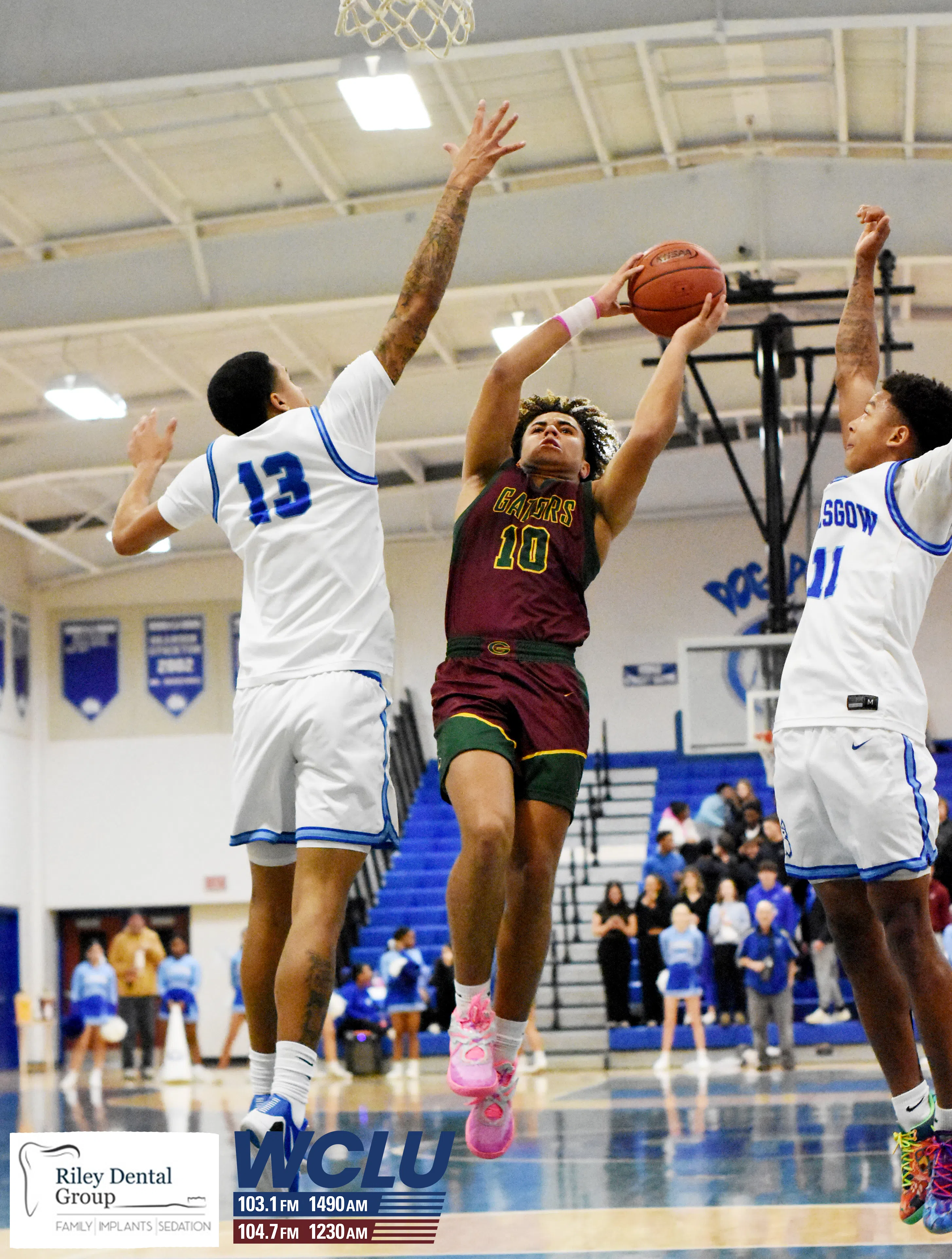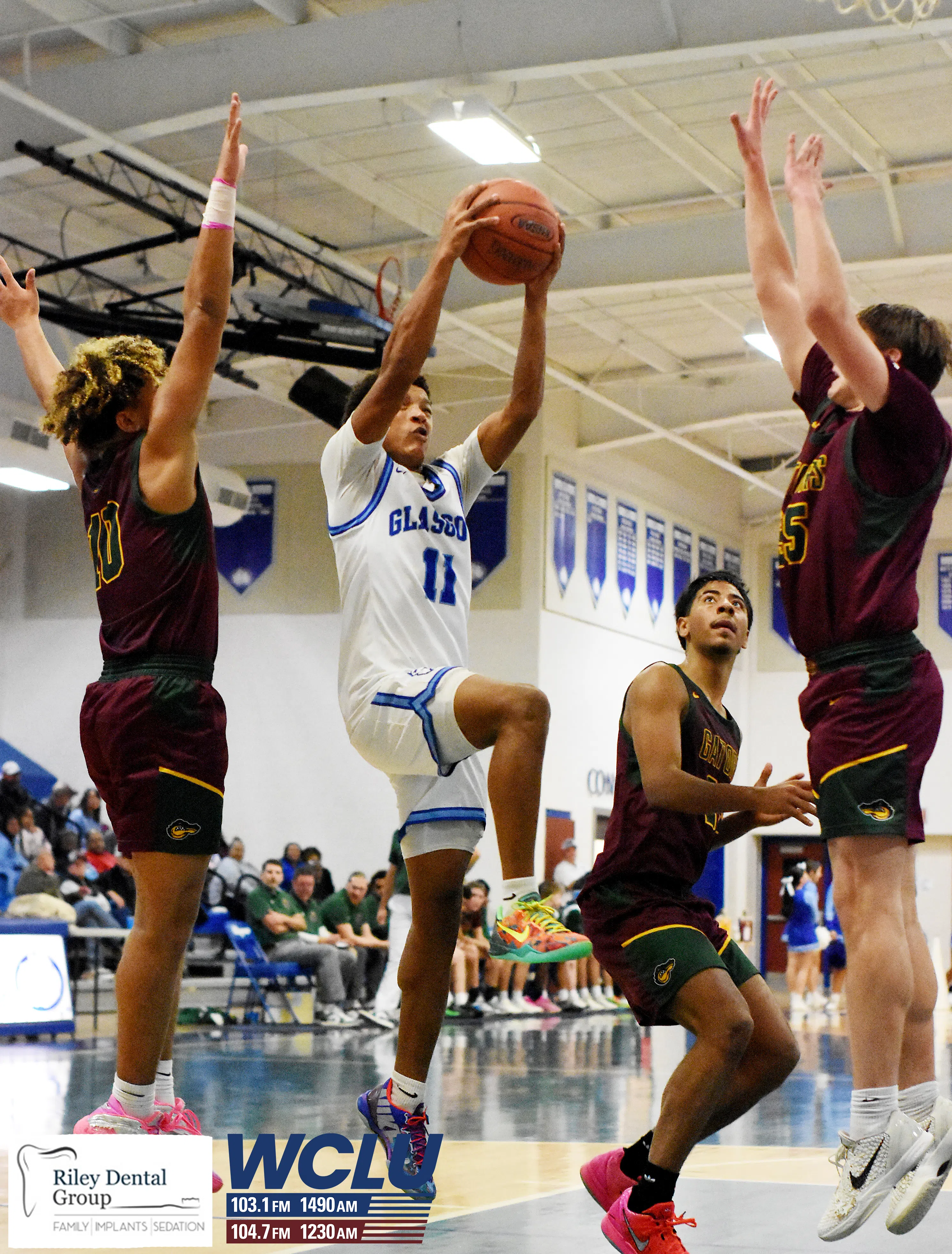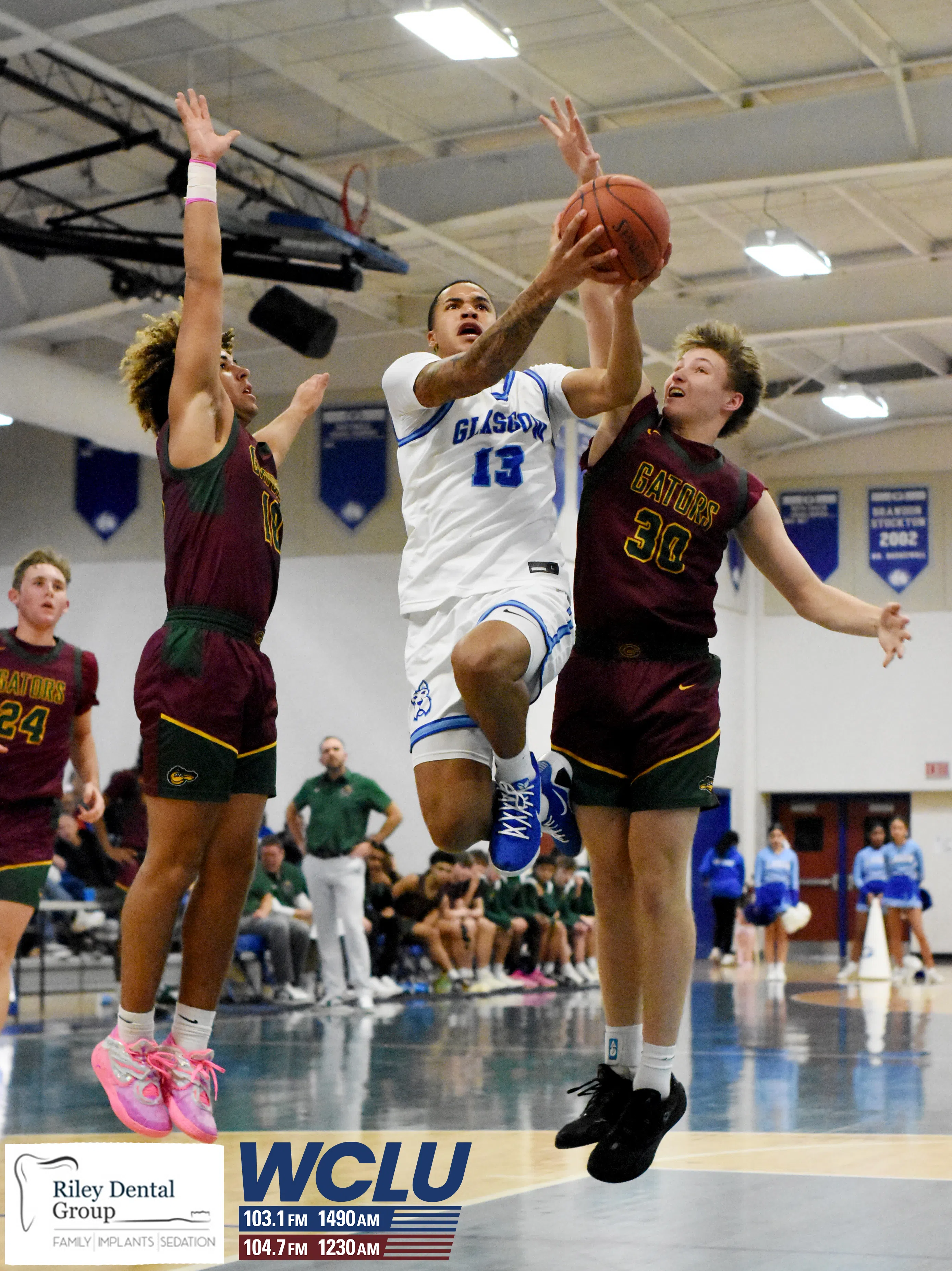 Glasgow’s Jaylen Bradley attempts a shot in the lane against Greenwood. The Scotties won, 65-62. James Brown/WCLU Sports