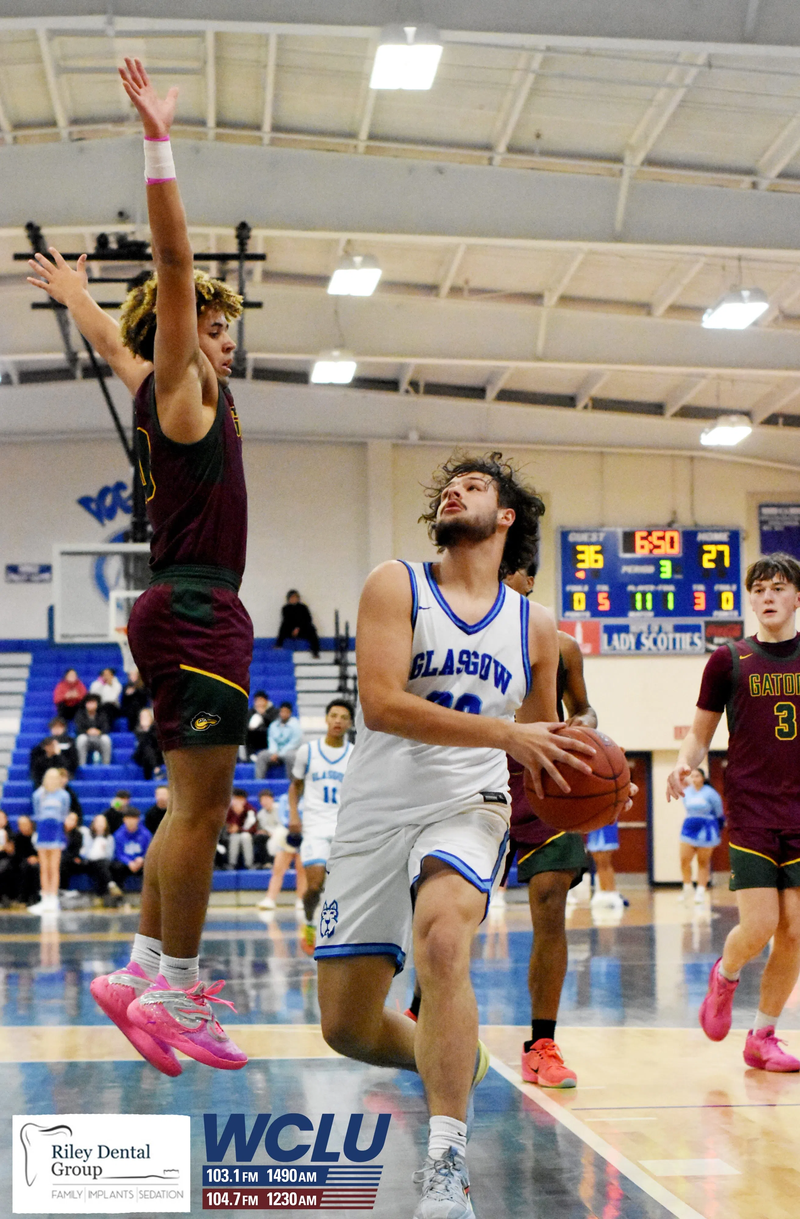 Glasgow’s Landon Minton looks to shoot in the lane against Greenwood. The Scotties won, 65-62. James Brown/WCLU Sports