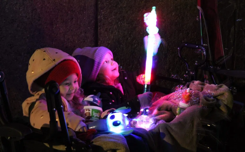 Bundled-up children waited expectantly for the longest nighttime Christmas Parade in Kentucky to begin. Numerous children wielded bubble wands or glow sticks in keeping with the Neon Christmas theme. Michael Crimmins/Glasgow News 1