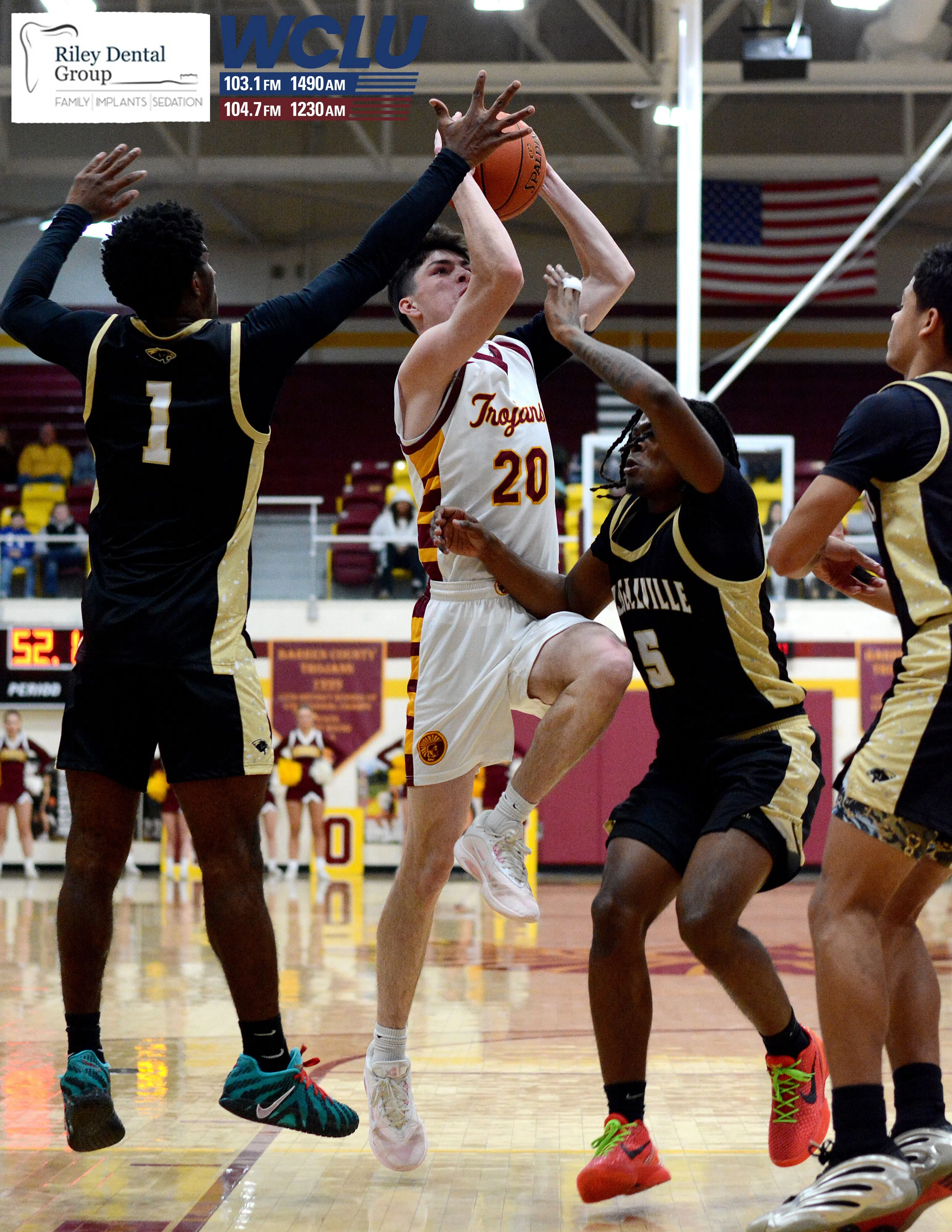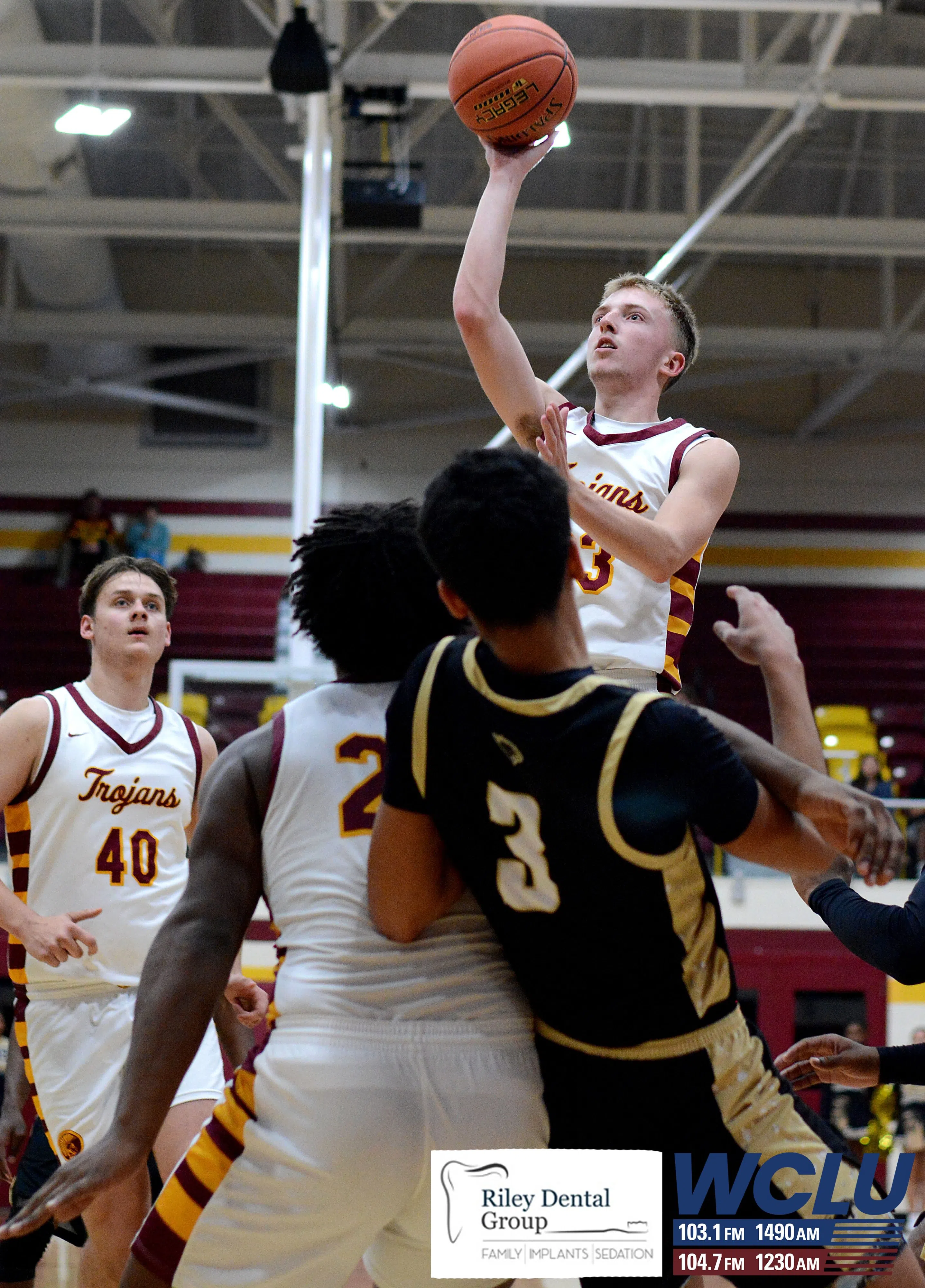 Barren County’s Ben Blackburn shoots a mid-range jump shot against Russellville. The Trojans won, 65-46. Auggie Brown/WCLU Sports