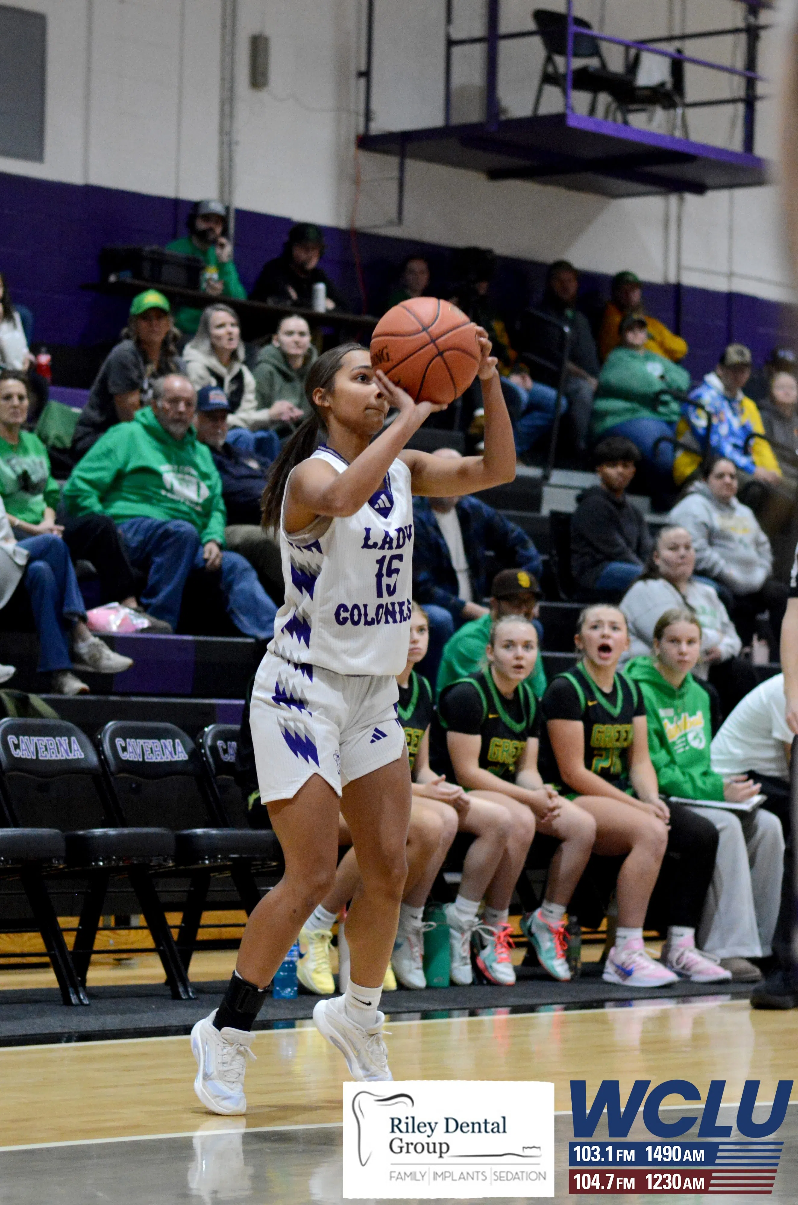 Caverna’s Jordyn Bethel shoots in the lane against Green County. The Lady Colonels lost, 89-38. Auggie Brown/WCLU Sports