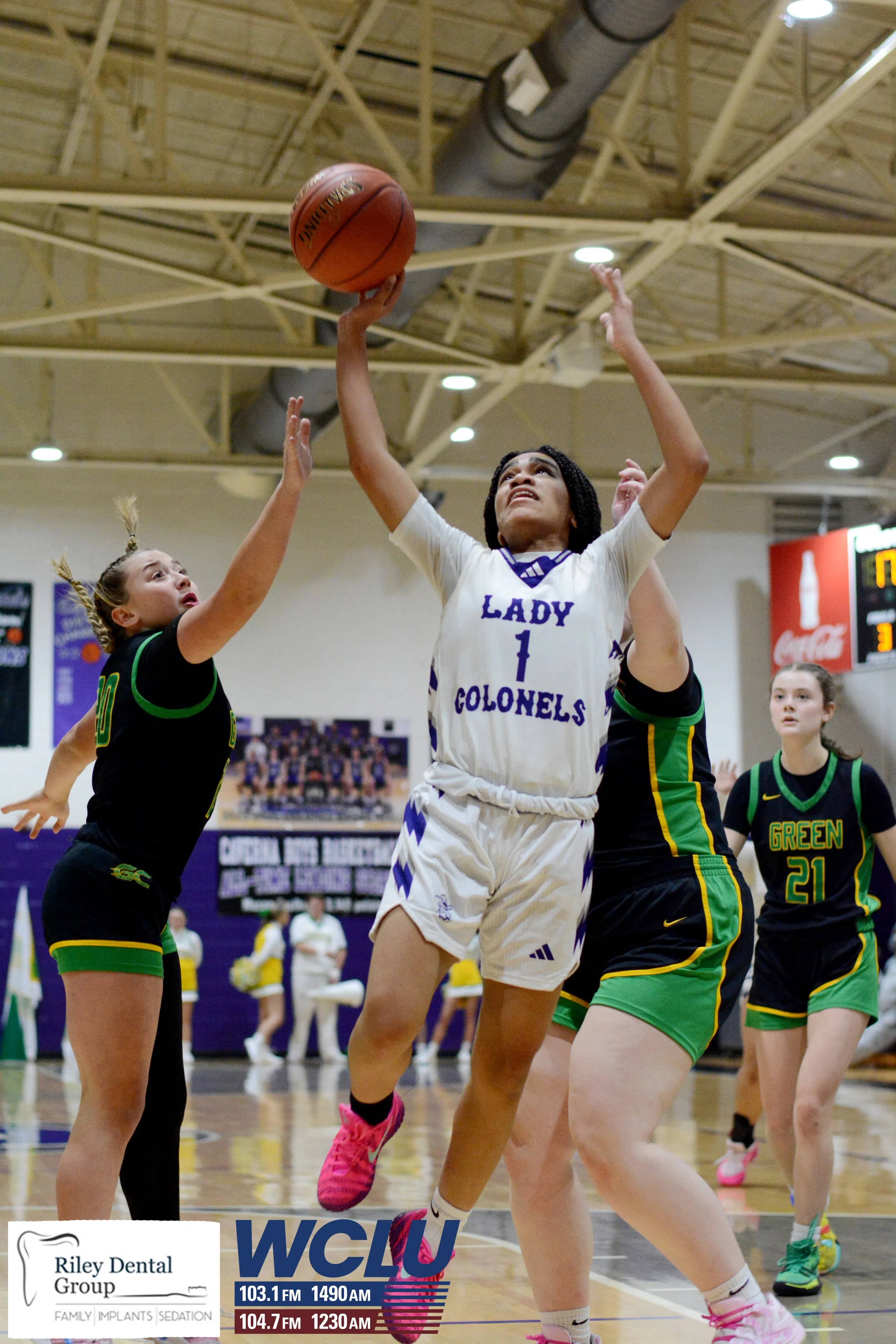 Caverna’s Kamryn Cole shoots in the lane against Green County. The Lady Colonels lost, 89-38. Auggie Brown/WCLU Sports