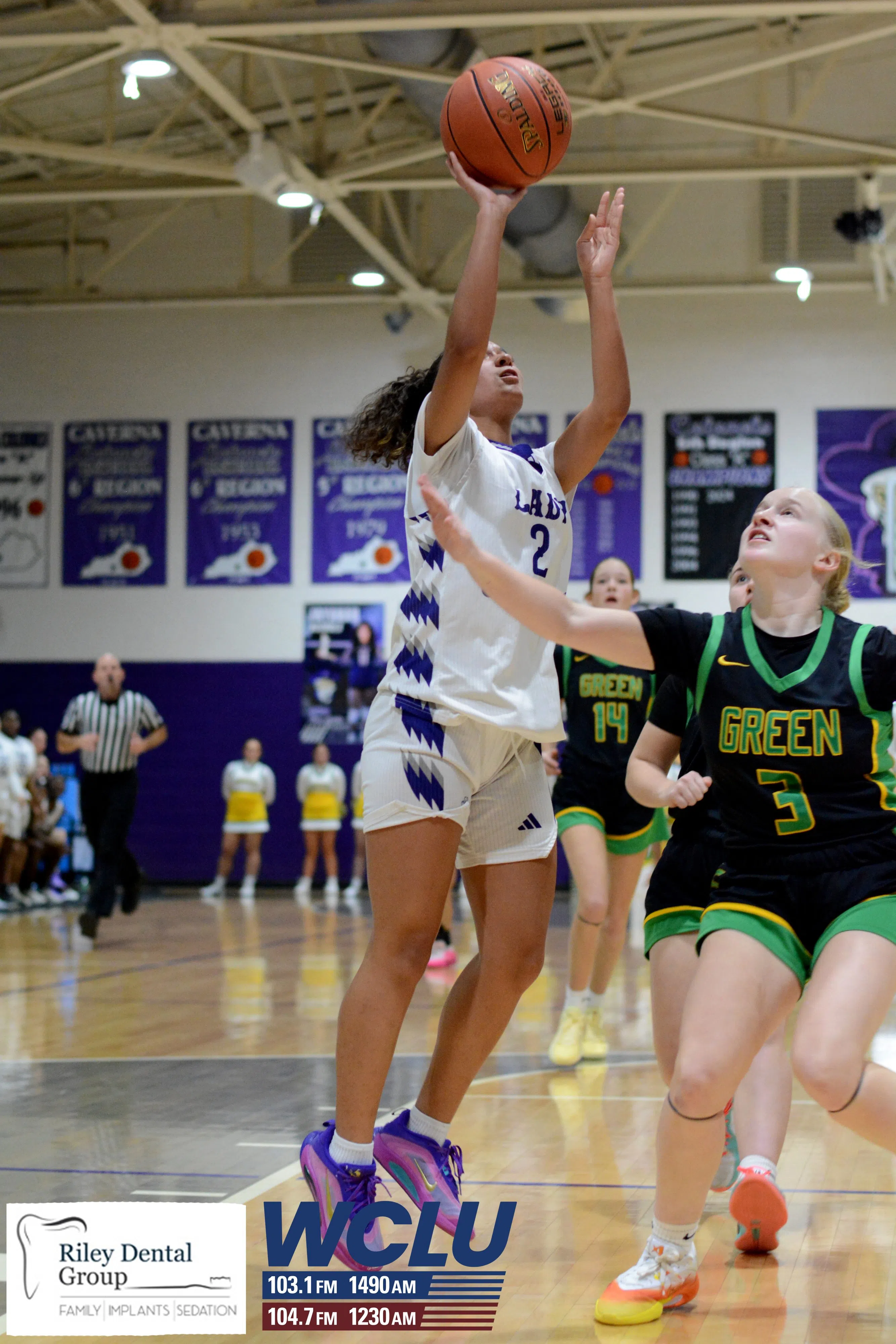 Caverna’s Jordyn Bethel shoots in the lane against Green County. The Lady Colonels lost, 89-38. Auggie Brown/WCLU Sports