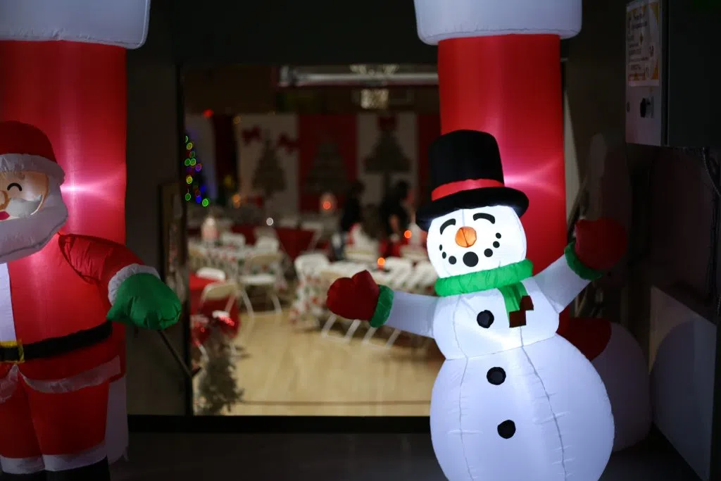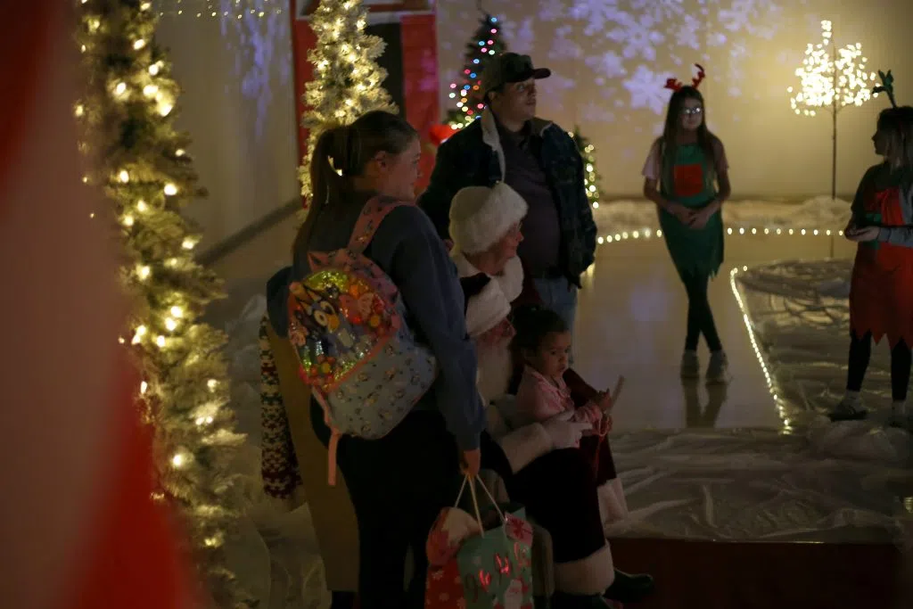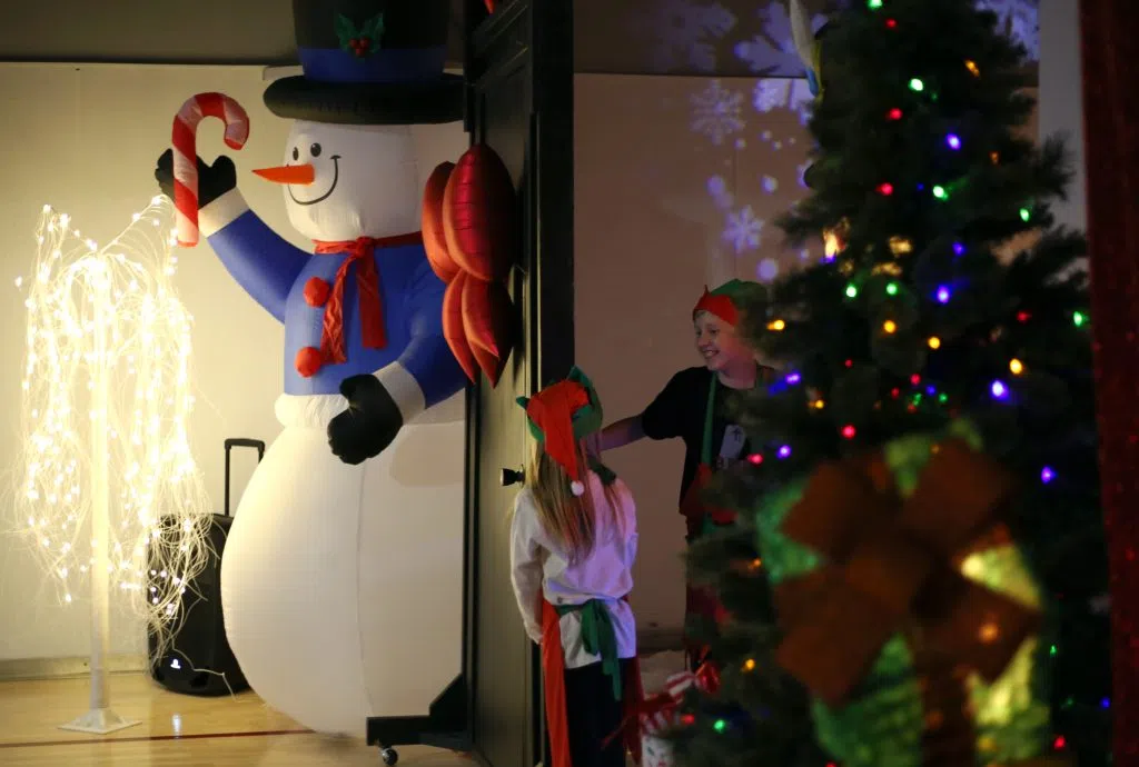 The gym was transformed into a Christmas landscape, full of lights and decorations — as well as Santa and Mrs. Claus.