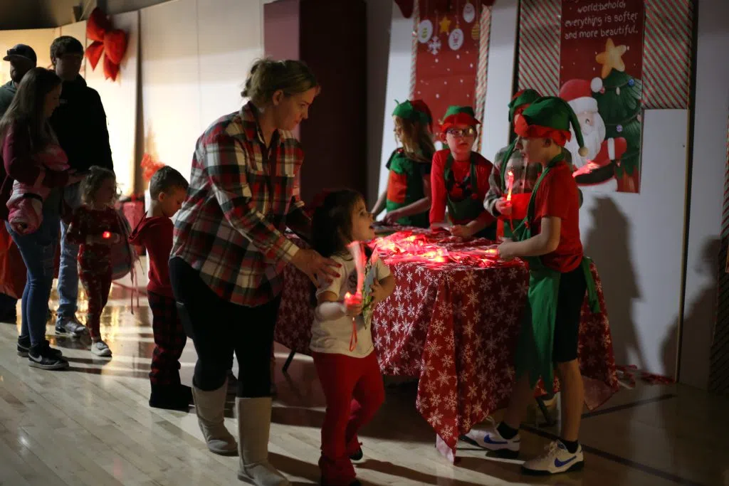 Children receive a “magic wand” during a Winter Wonderland event on Thursday, Dec. 18, 2025, in the Trojan Way Center. Will Perkins/Glasgow News 1