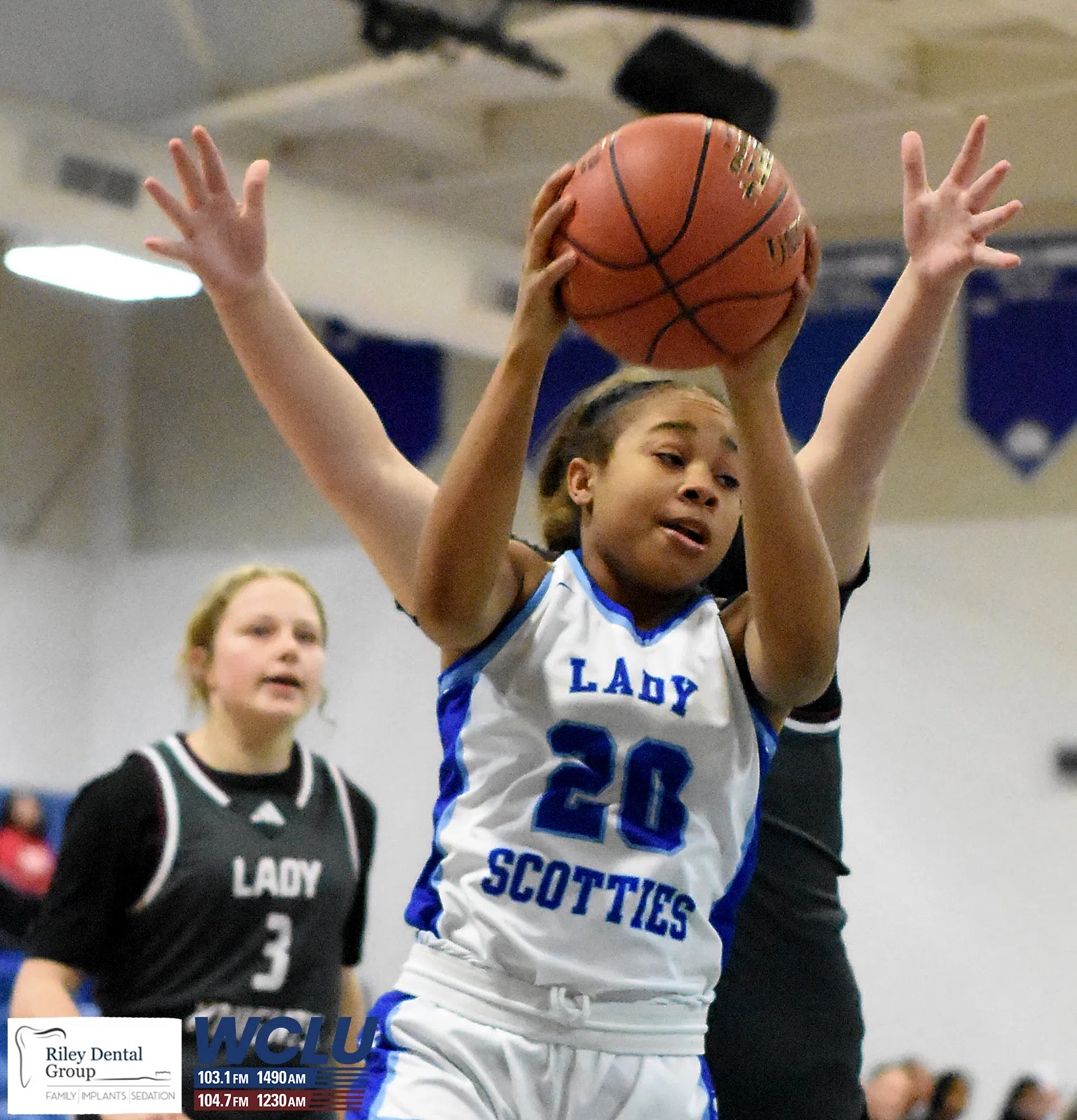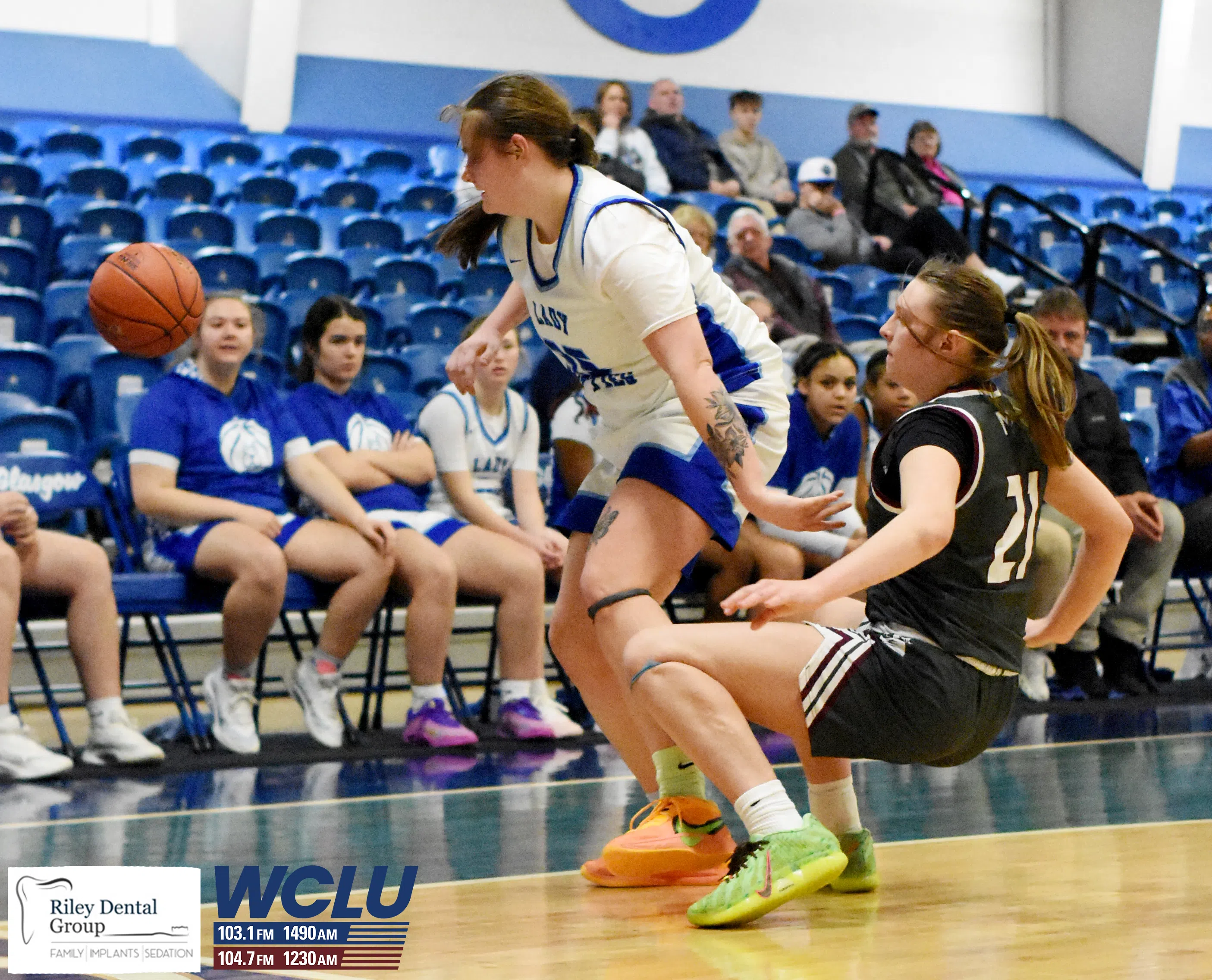 Glasgow’s Riley Strode battles for a loose ball against Marion County. The Lady Scotties won, 47-45. James Brown/WCLU Sports
