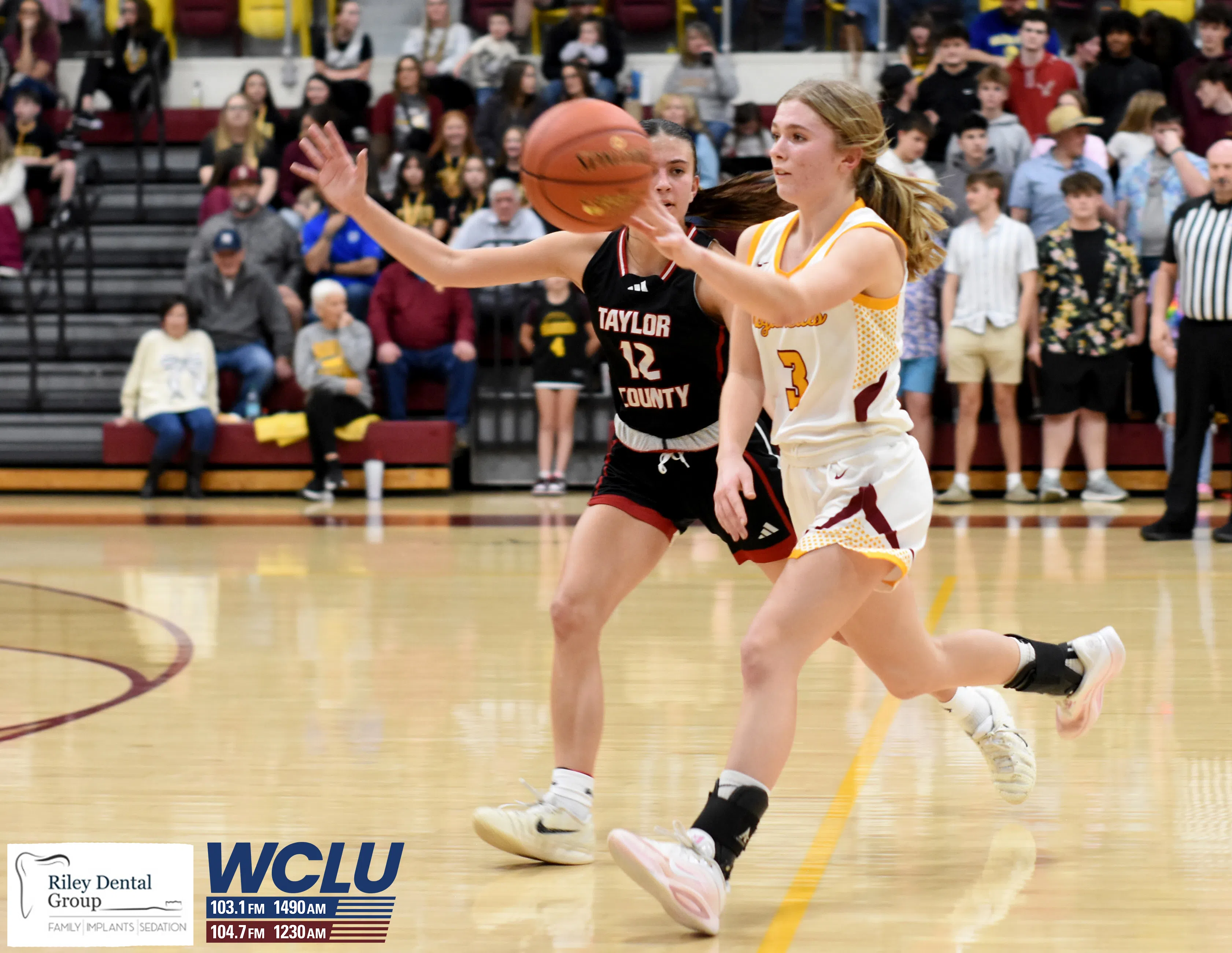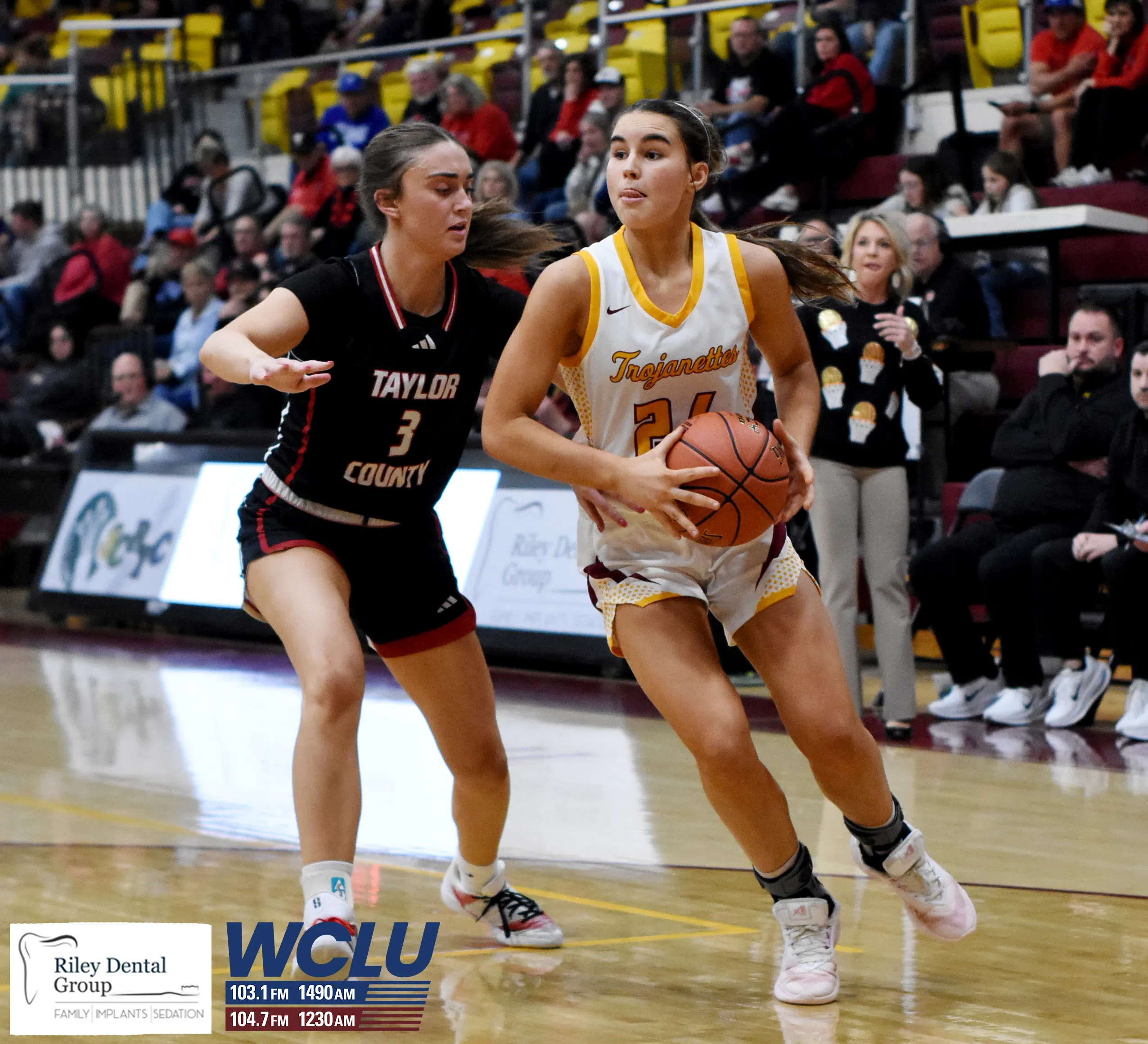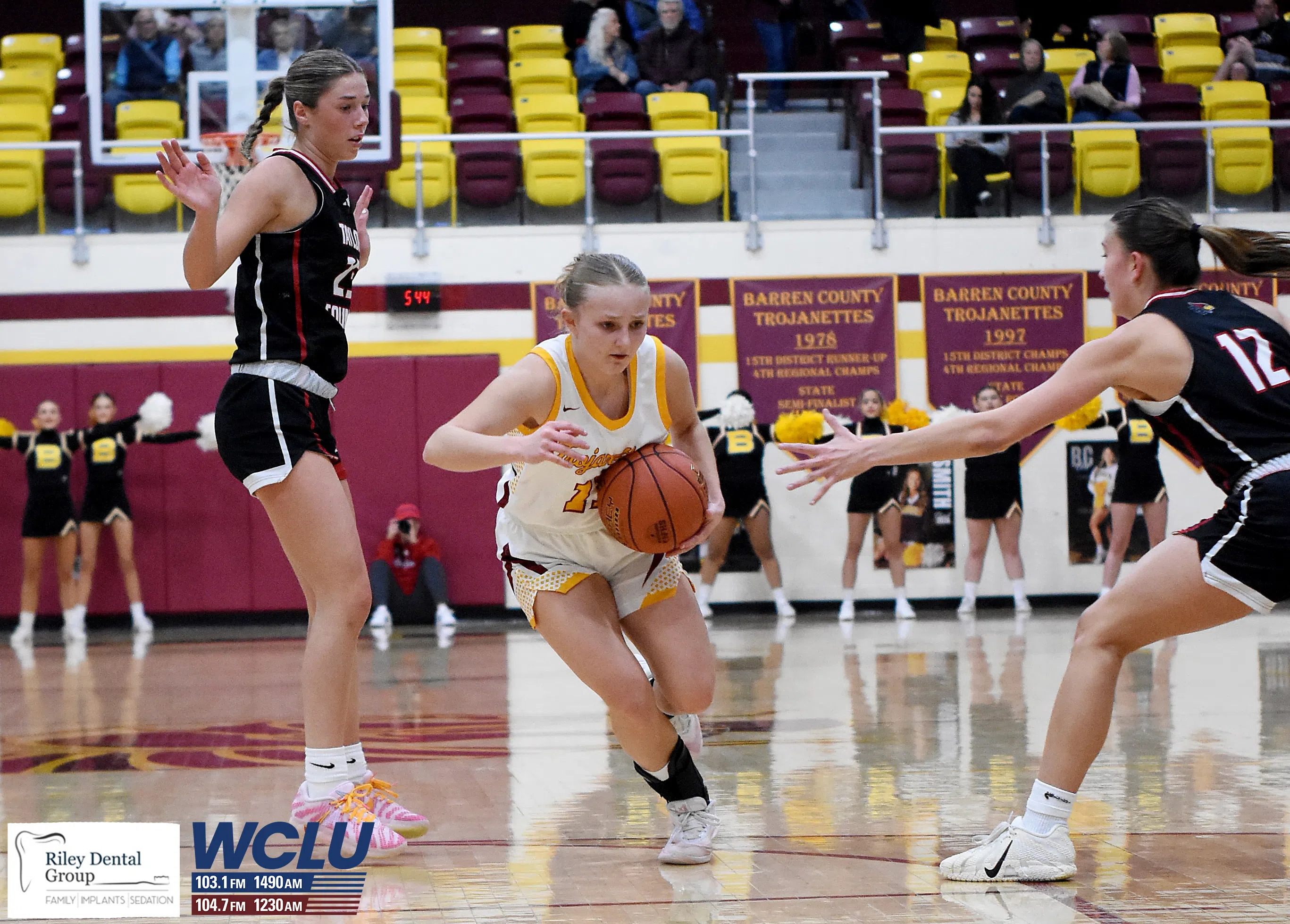 Barren County’s Addy Slagle drives against Taylor County. The Trojanettes won, 71-65. James Brown/WCLU Sports