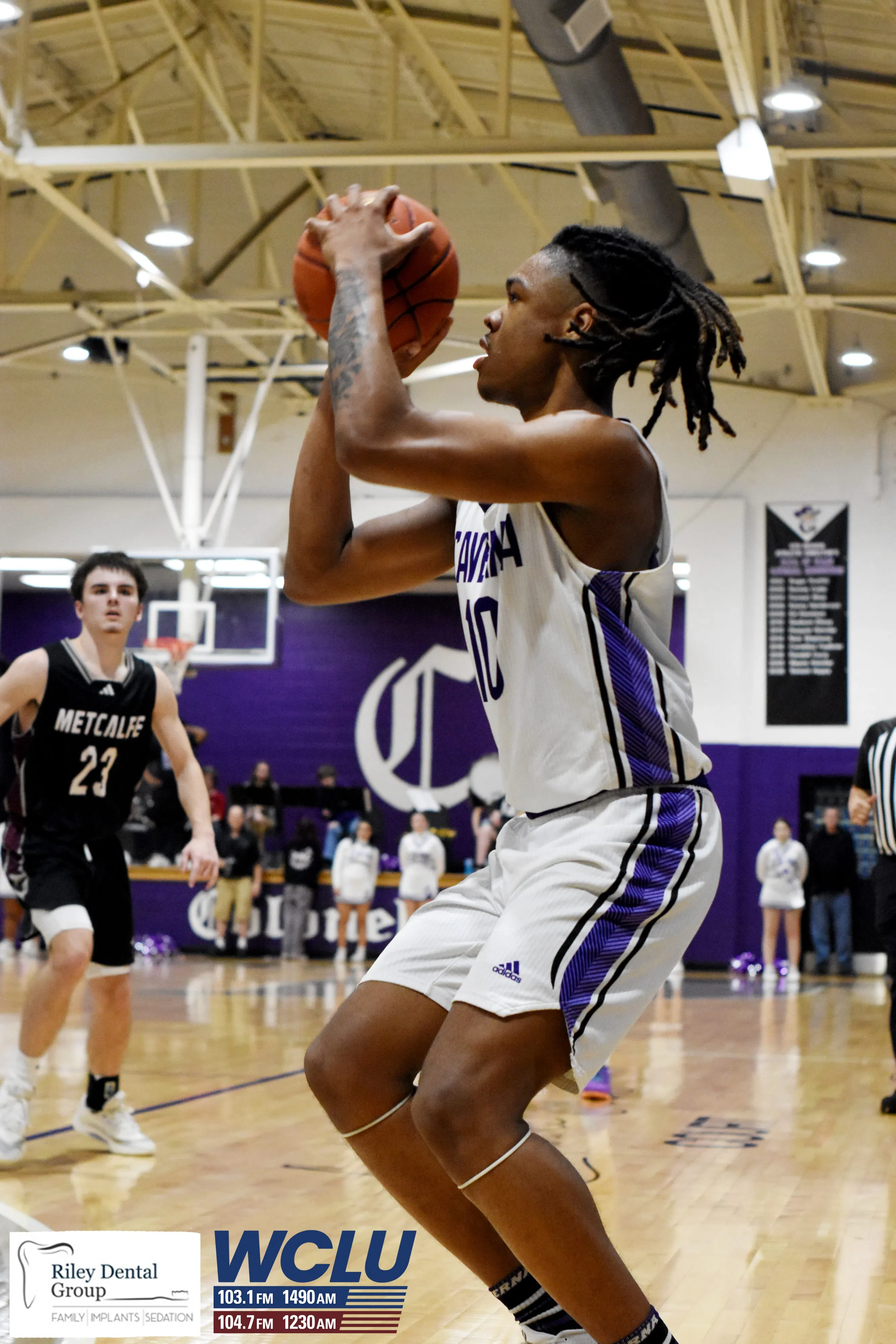 Caverna’s Cortavian Maxey sets to shoot a 3-pointer against Metcalfe County on Senior Night. The Colonels won, 74-57. James Brown/WCLU Sports