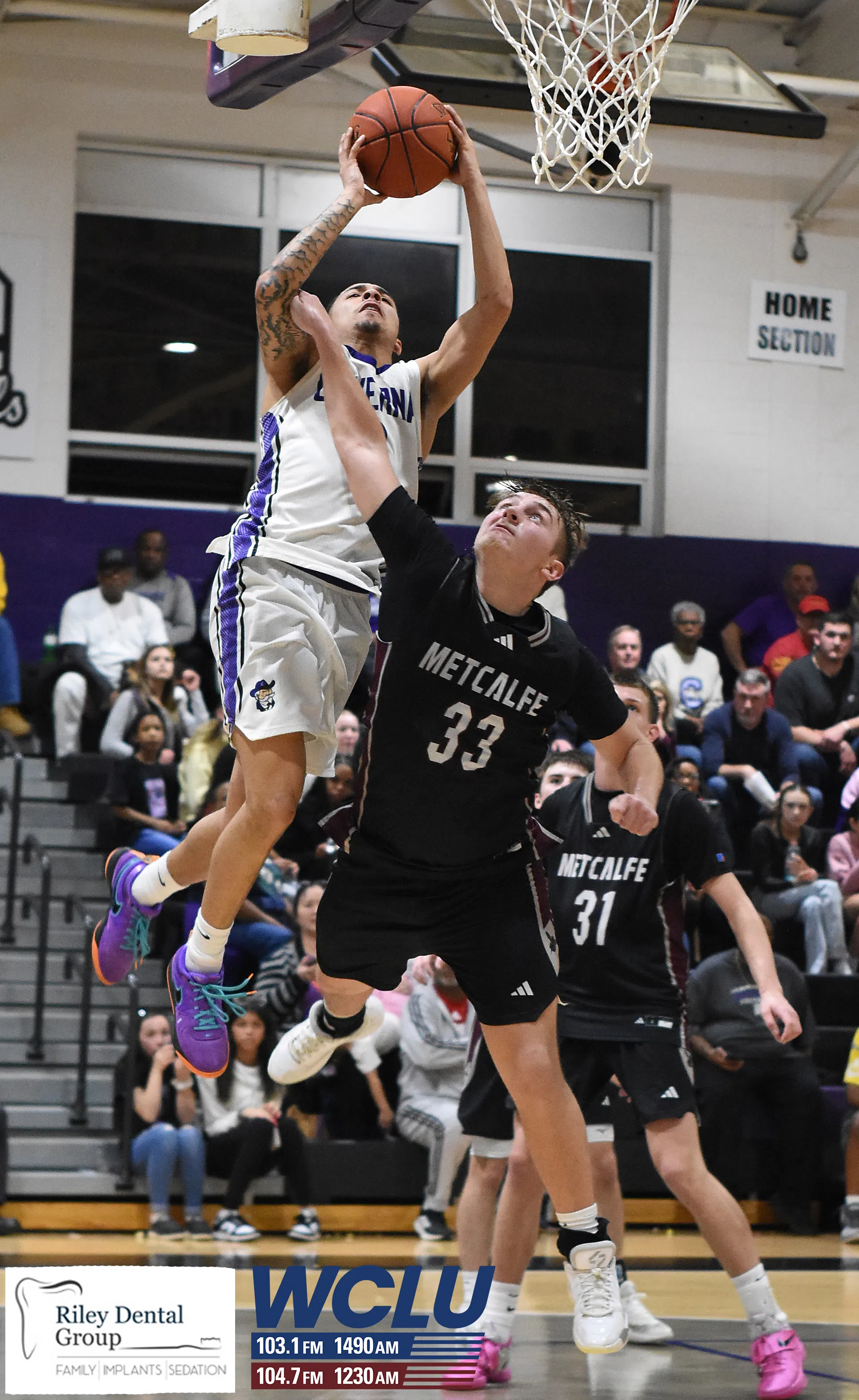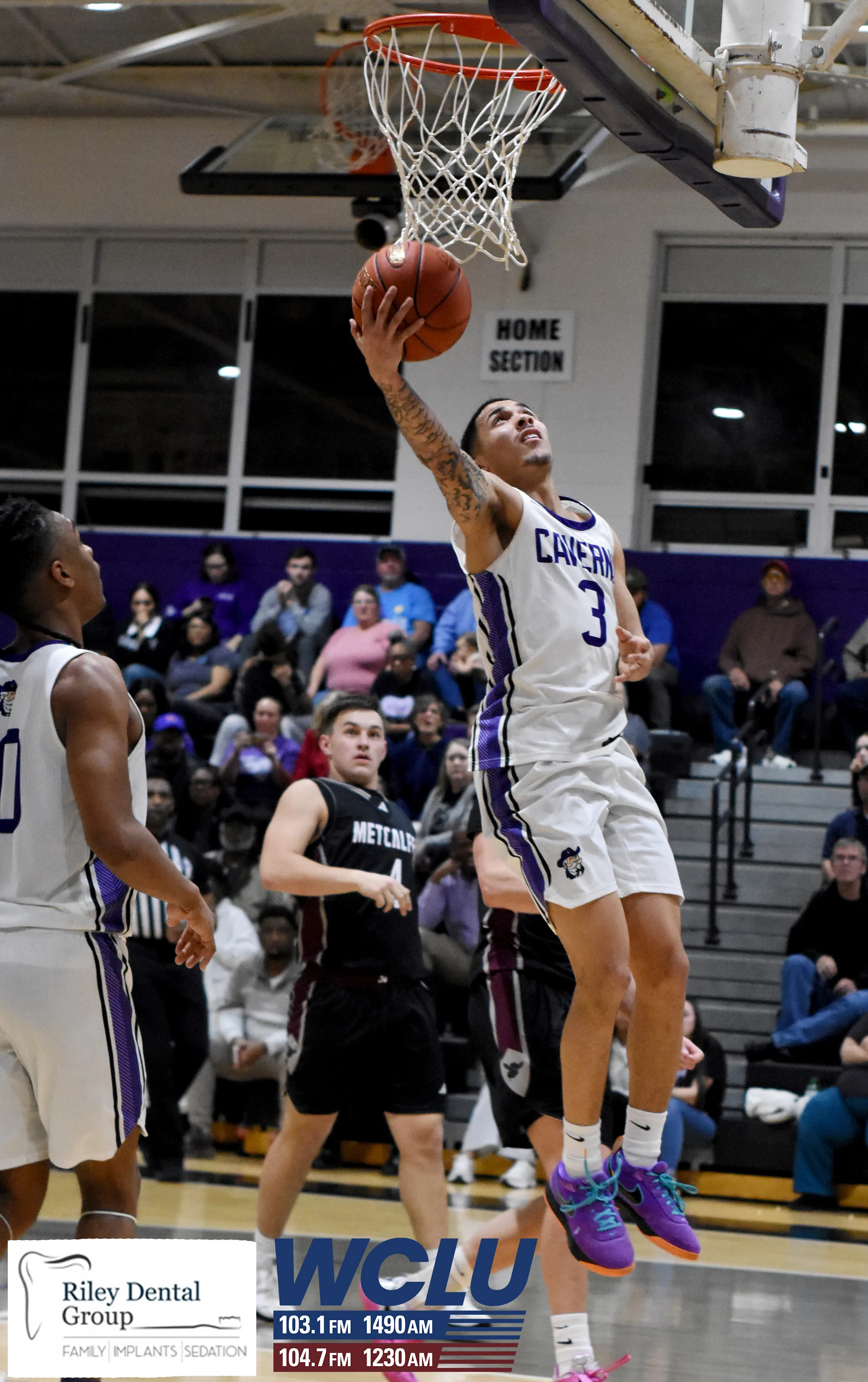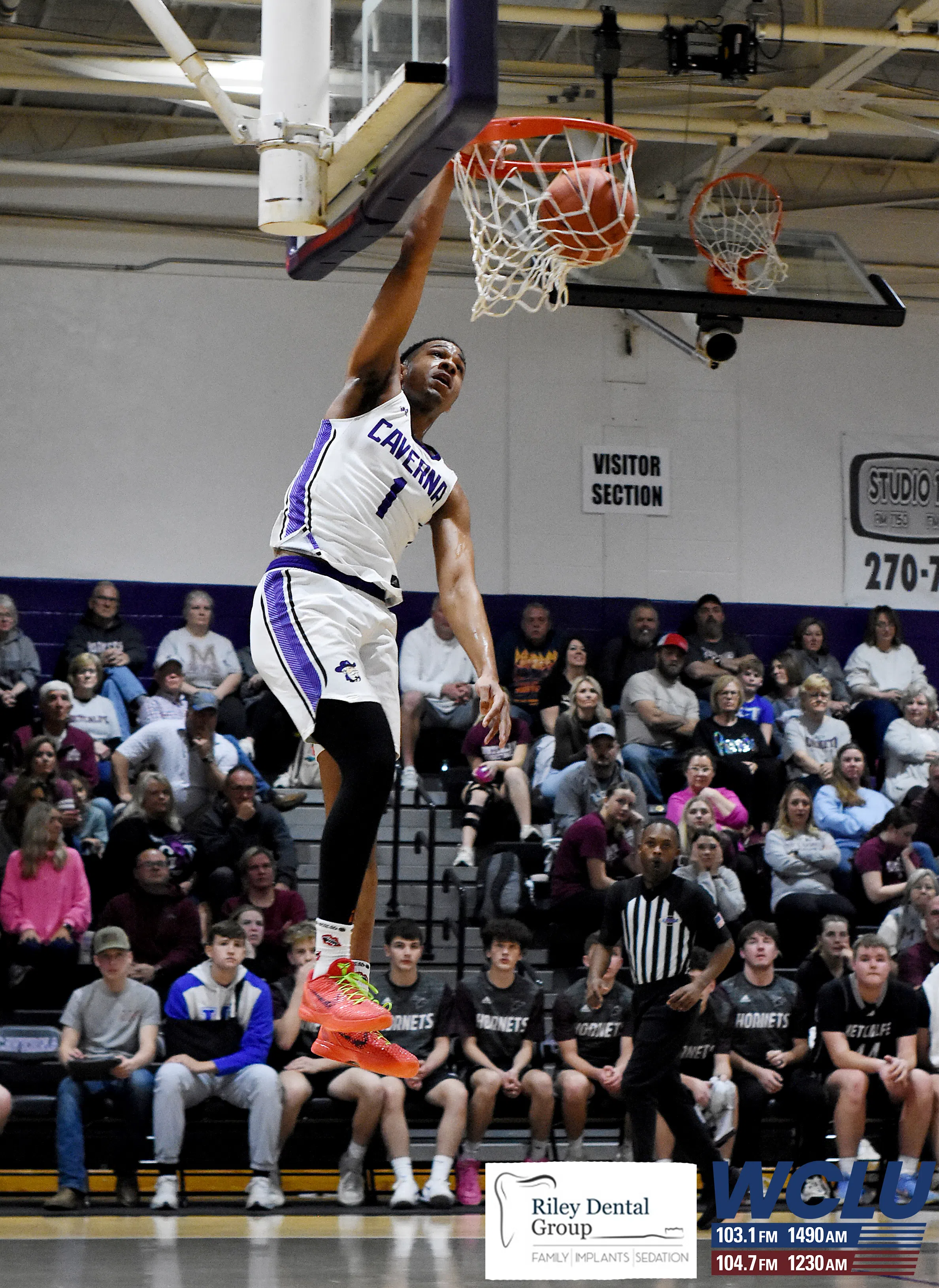 Caverna’s Gavin Lightning dunks the basketball against Metcalfe County on Senior Night. The Colonels won, 74-57. James Brown/WCLU Sports