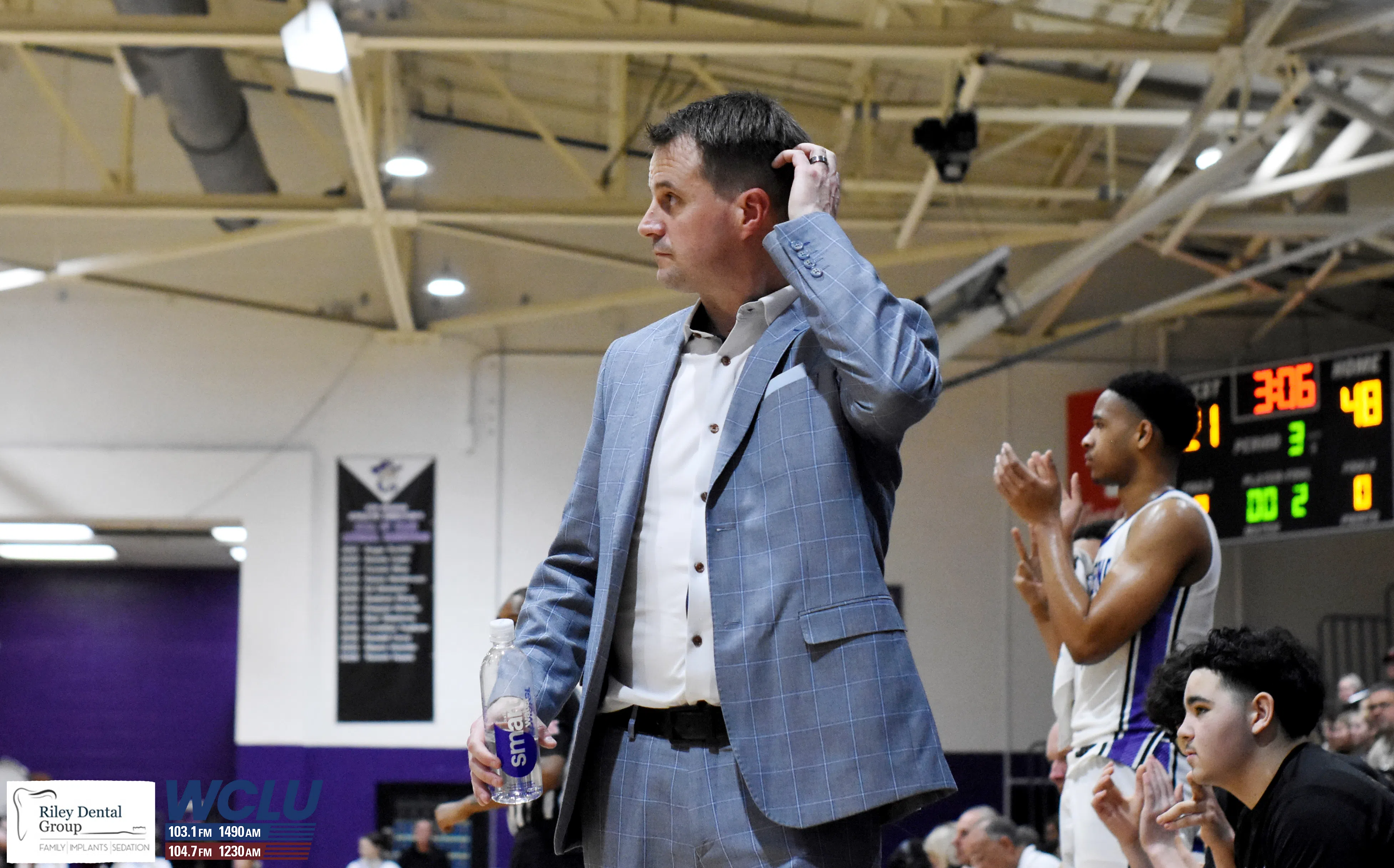 Caverna Colonels coach Josh Pittman looks on as players on the bench clap against Metcalfe County on Senior Night. The Colonels won, 74-57. James Brown/WCLU Sports