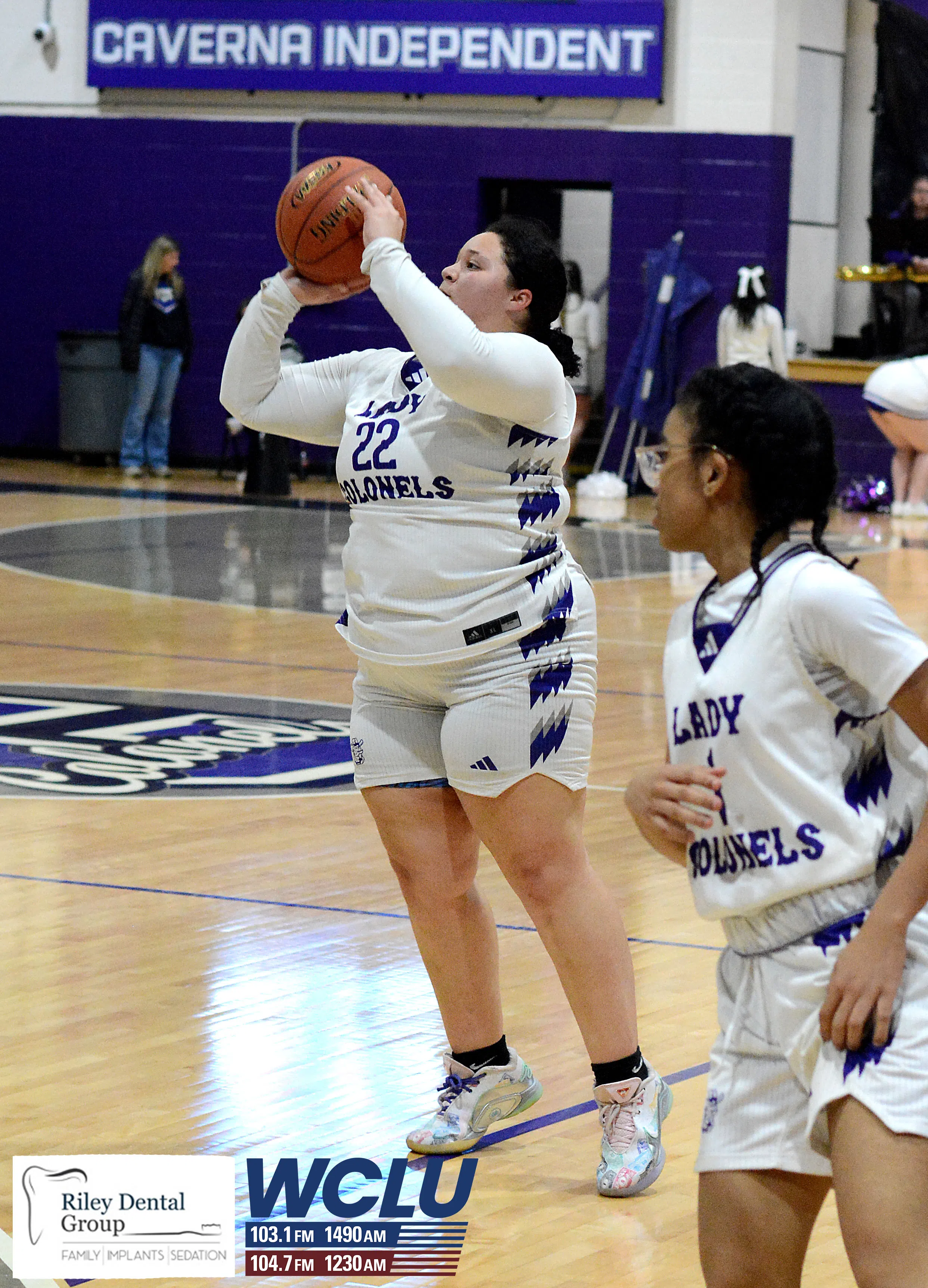 Caverna’s Kamryn Cole shoots a 3-pointer against Green County. The Lady Colonels lost, 70-21, in the first round of the Girls 18th District Tournament. Auggie Brown/WCLU Sports