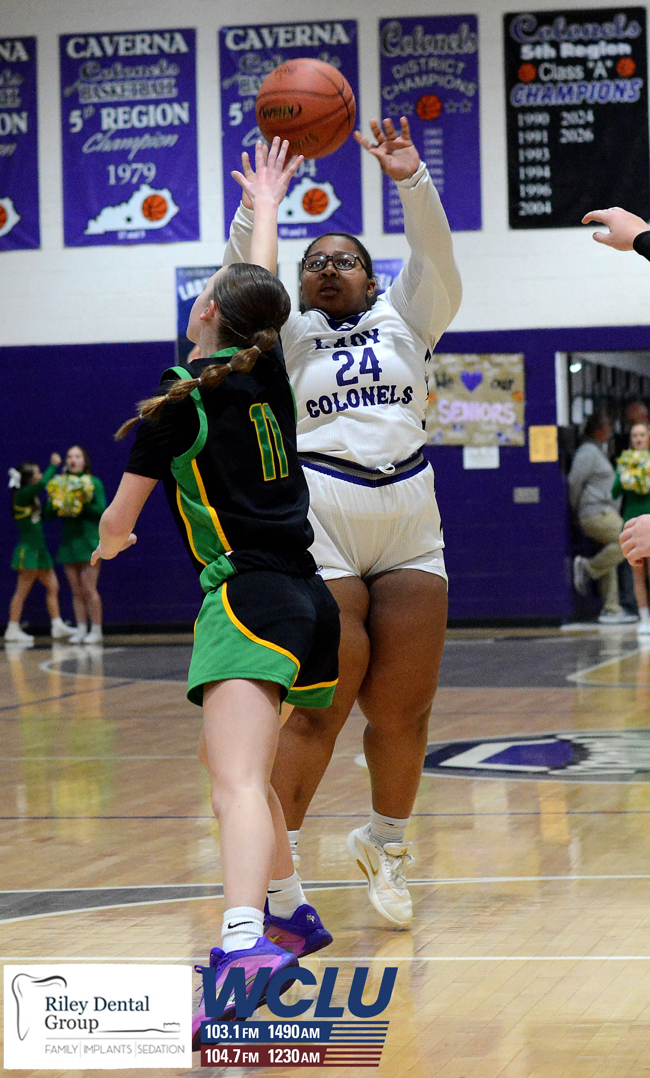 Caverna’s Dalliah Wood shoots a mid-range jumper against Green County. The Lady Colonels lost, 70-21, in the first round of the Girls 18th District Tournament. Auggie Brown/WCLU Sports