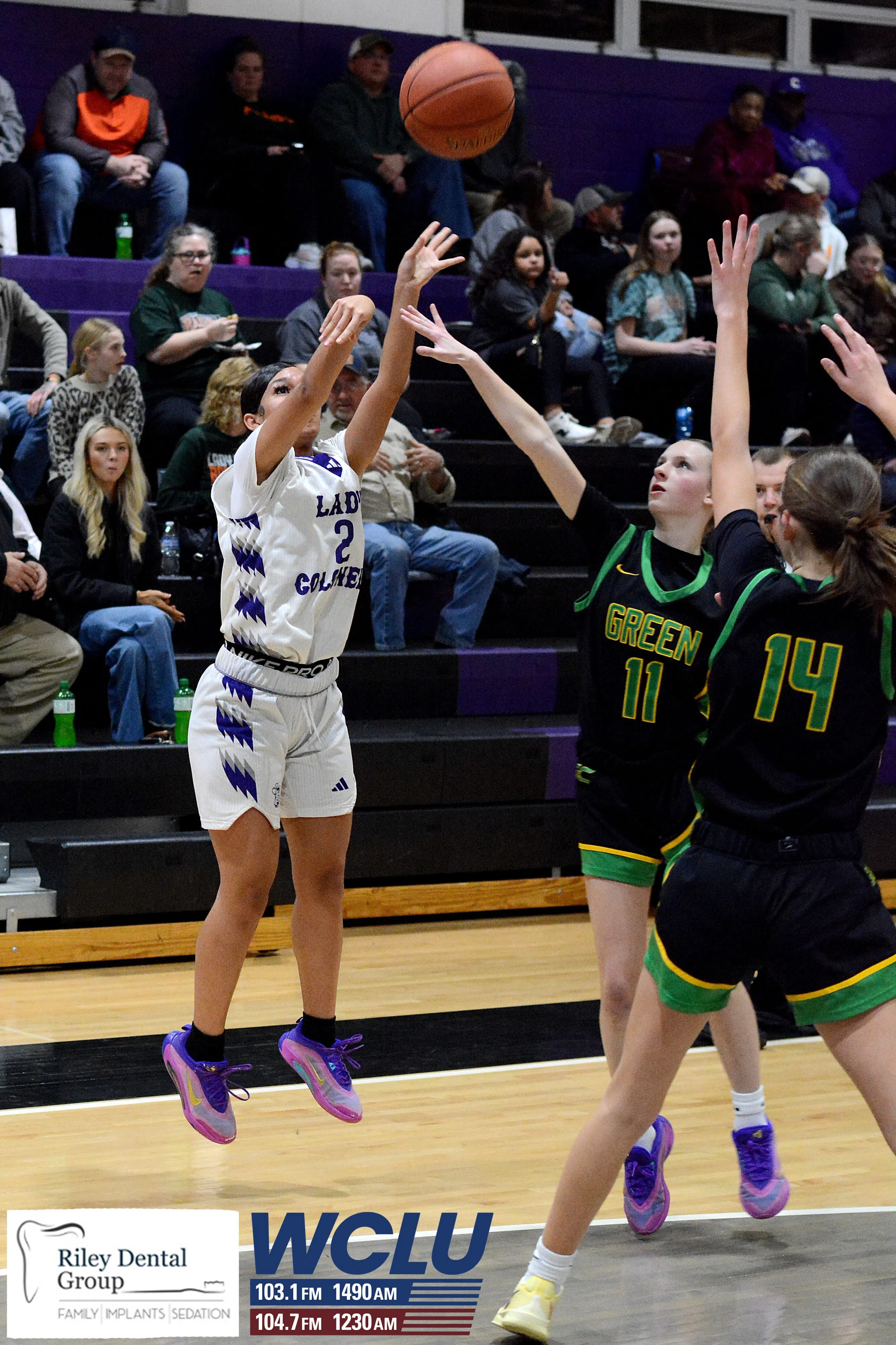 Caverna’s Calee Wells shoots a 3-pointer against Green County. The Lady Colonels lost, 70-21, in the first round of the Girls 18th District Tournament. Auggie Brown/WCLU Sports