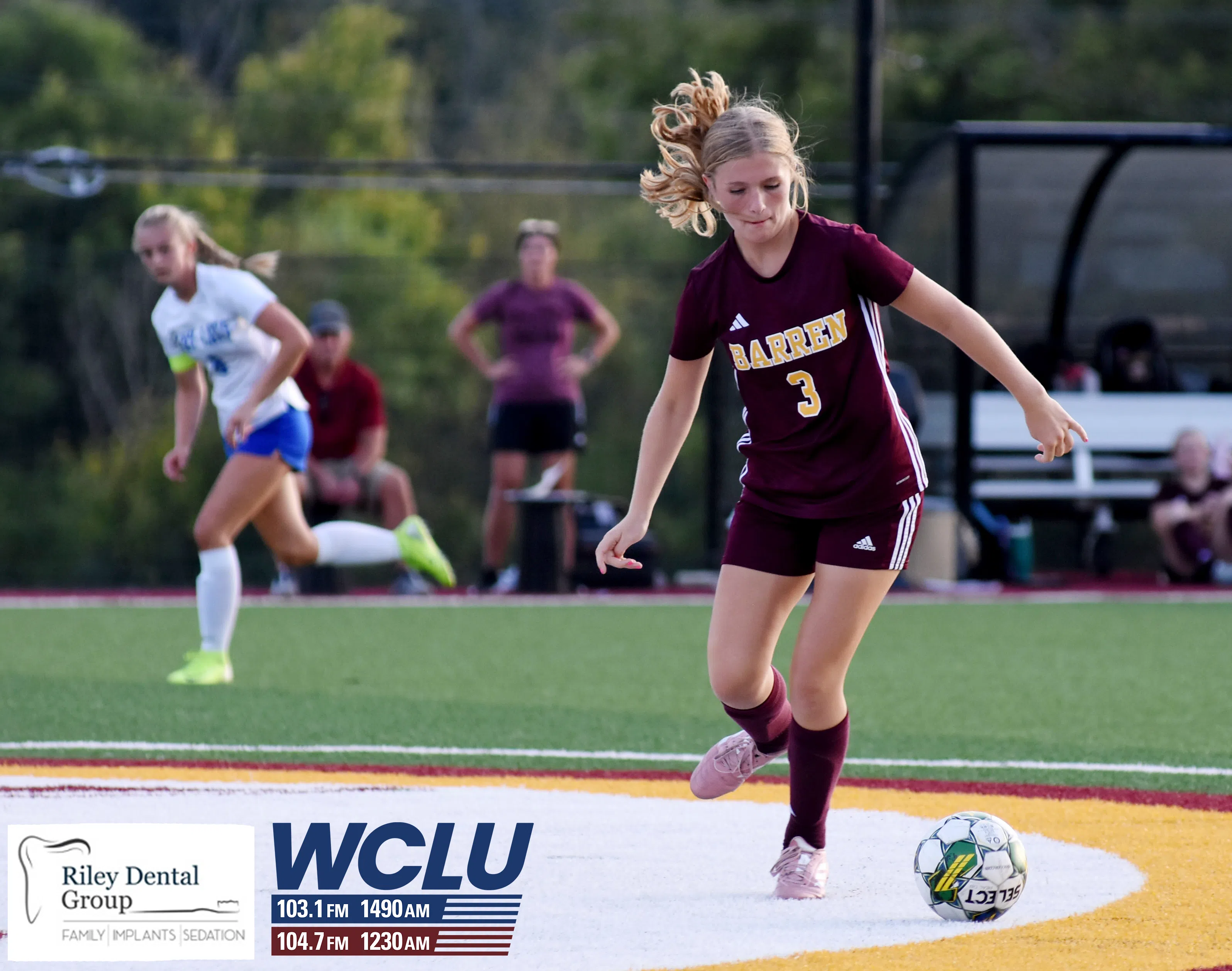 Barren County’s Haley Mutter battles for the ball against Franklin-Simpson. The Trojanettes lost, 4-3. James Brown/WCLU Sports