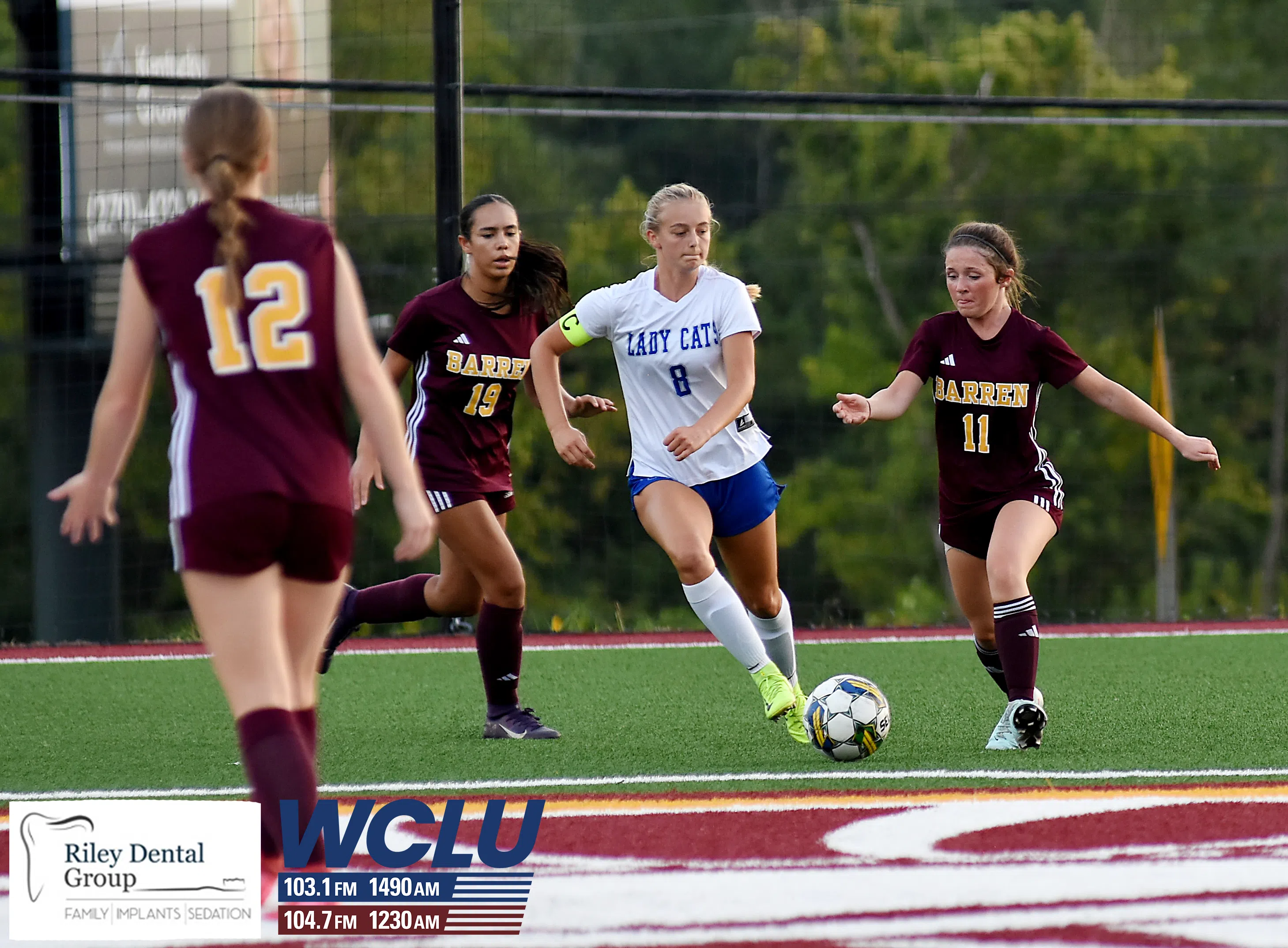 Barren County’s Kayla Kaumanns battles for the ball against Franklin-Simpson. The Trojanettes lost, 4-3. James Brown/WCLU Sports