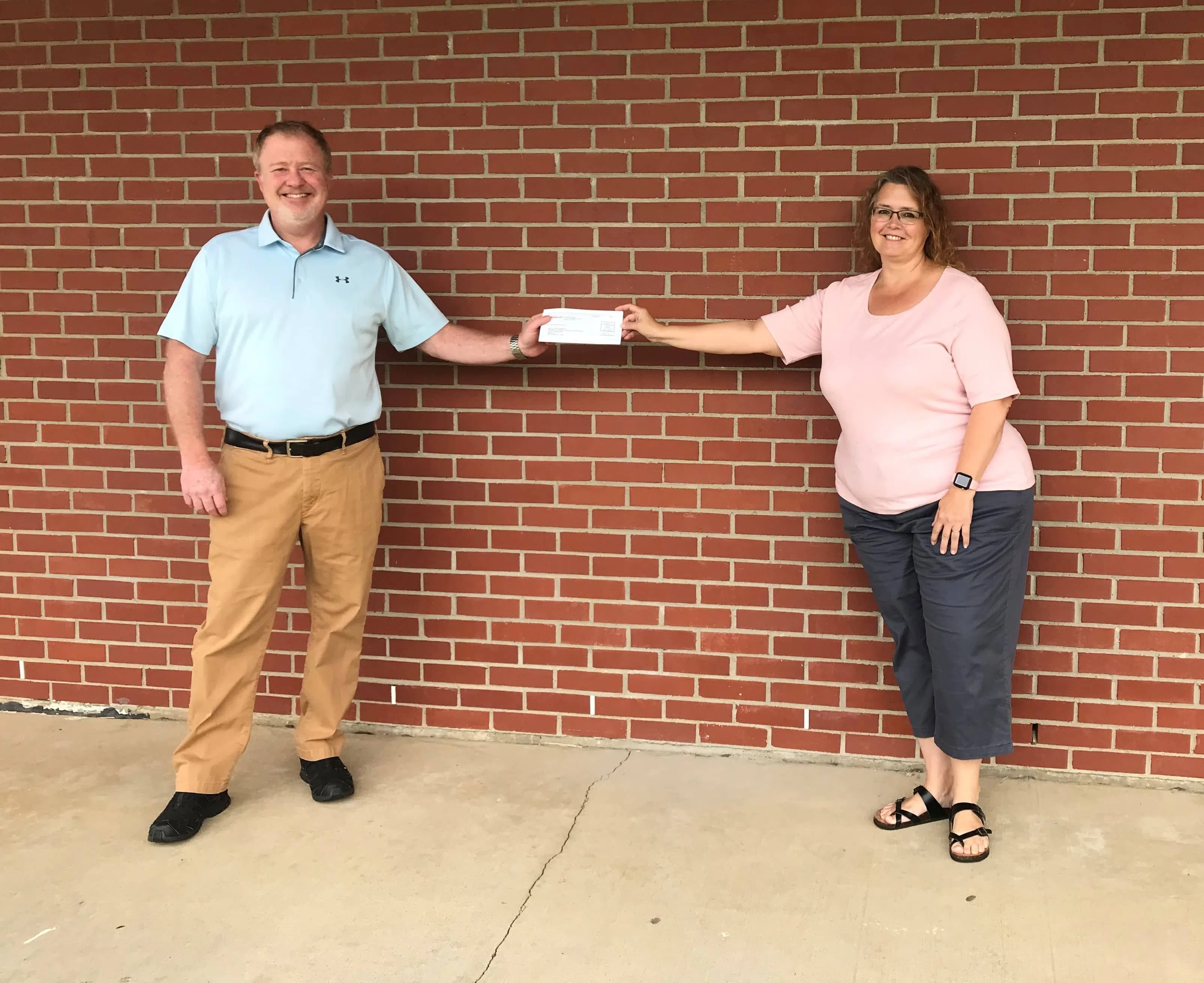 Tag Taylor, the chairperson of the Glasgow Electric Plant Board of Directors, presents Stacey Janes, a representative of Community Relief Fund, with a check to be used toward community initiatives. (P...