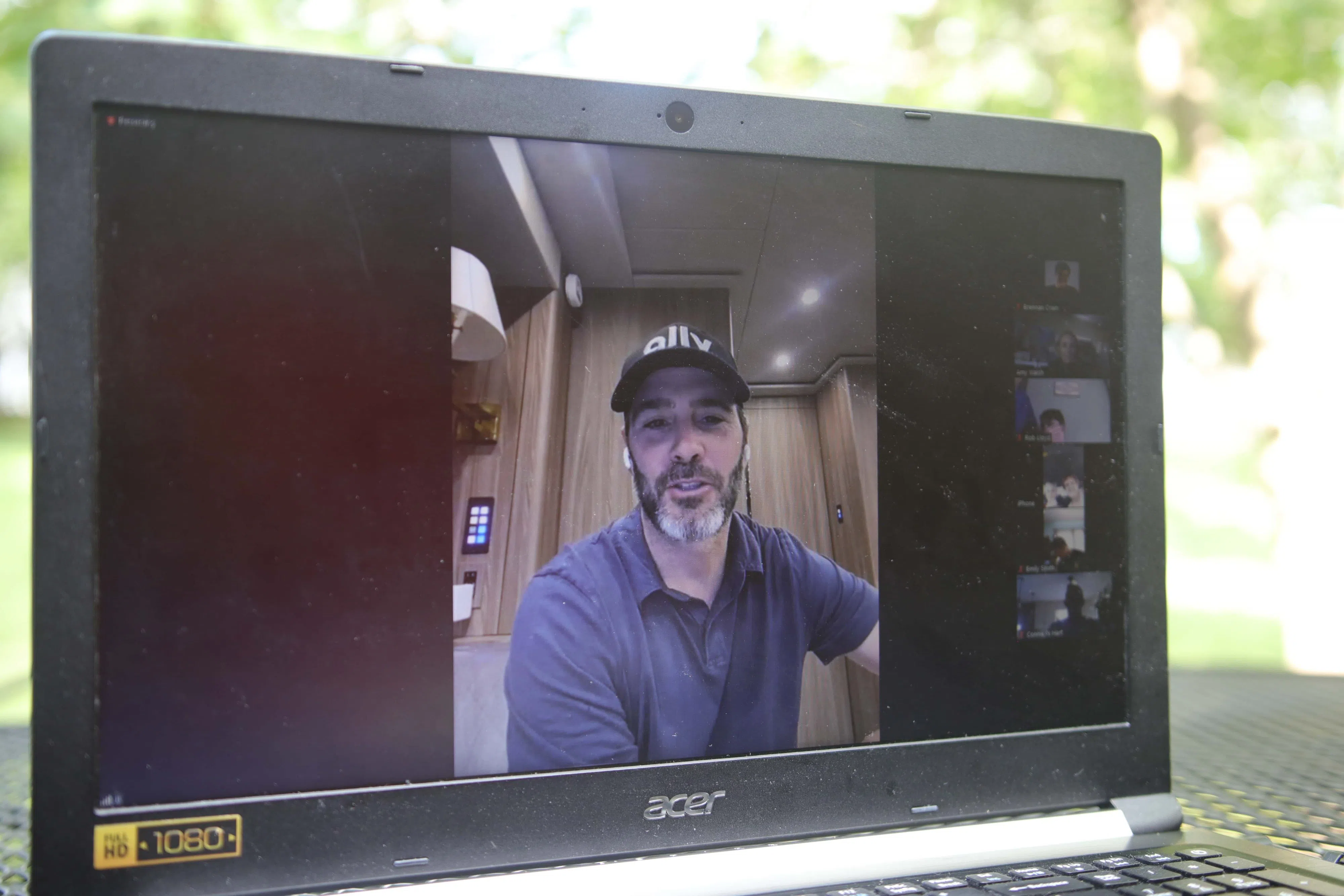 Jimmie Johnson, a NASCAR driver, joins a Zoom meeting with members of the Barren County Flames team on Thursday, July 23, 2020. Johnson called from Kansas Speedway before he was set to race in the Sup...