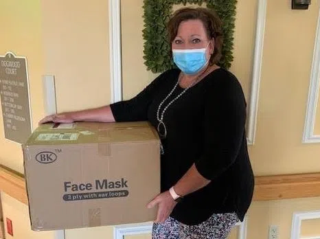 County accepts delivery of 2,000 masks donated by the Horse Cave Rotary Club. Photo