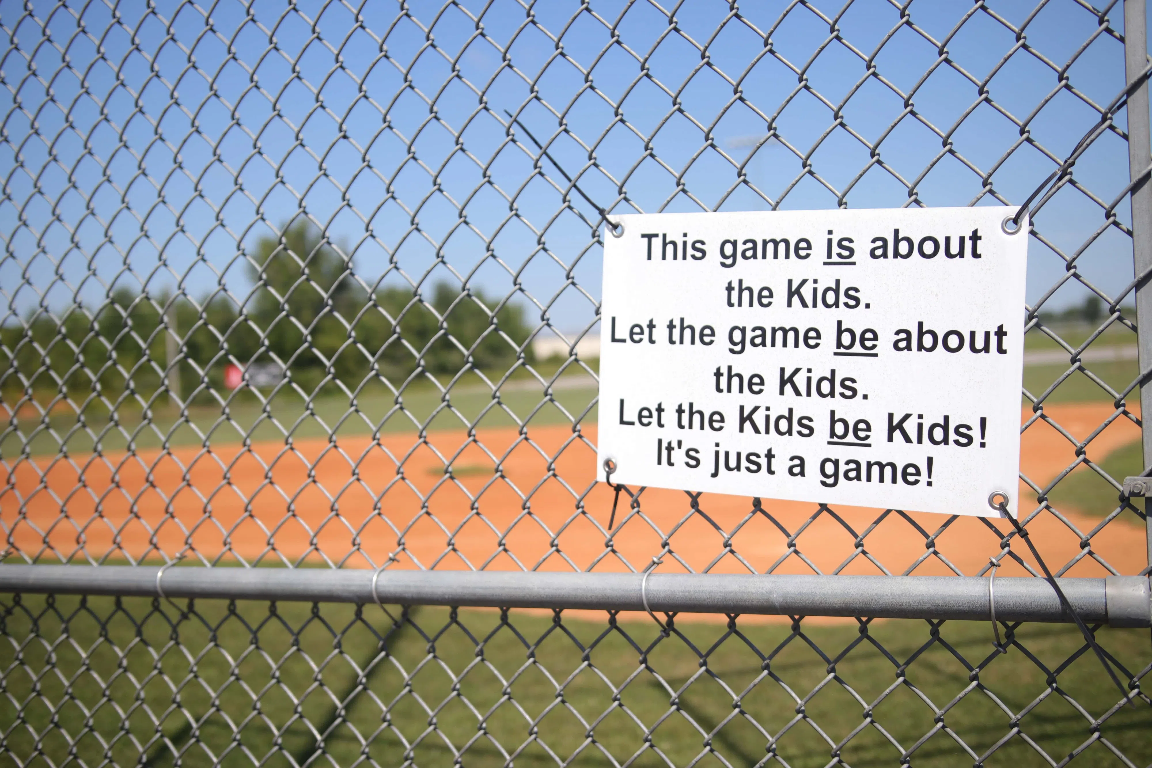 A sign reminding parkgoers about the nature of youth sports is placed along the fence at Jackie Browning Park in Glasgow. The park's staff has recently faced challenges regarding COVID-19 regulation e...