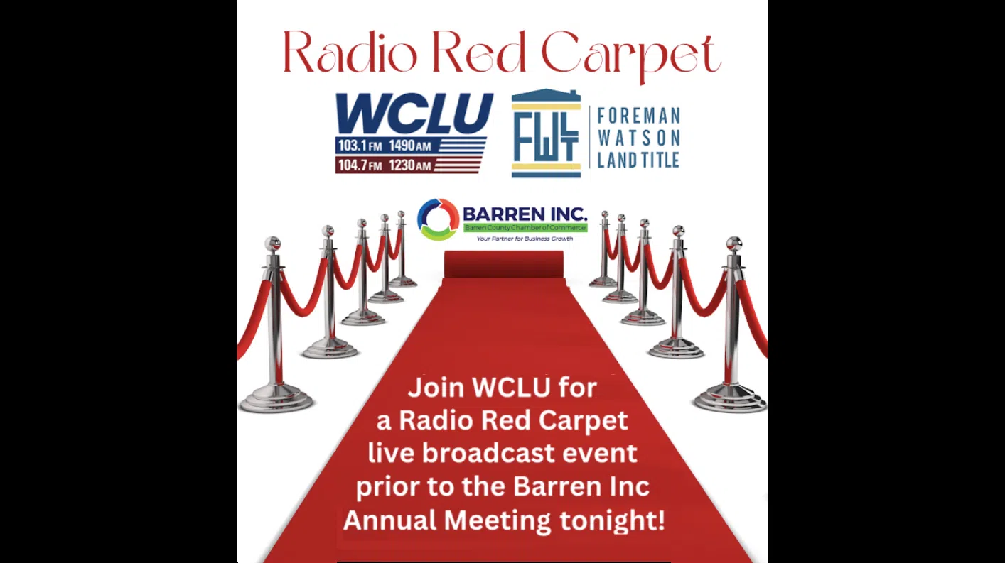 WCLU Radio will be hosting a Radio Red Carpet Preshow, presented by Foreman Watson Land Title, for Barren Inc.'s Annual Meeting. Watch the livestream below: https://youtube.com/live/_12qy2iM0Ko?si=dKV...