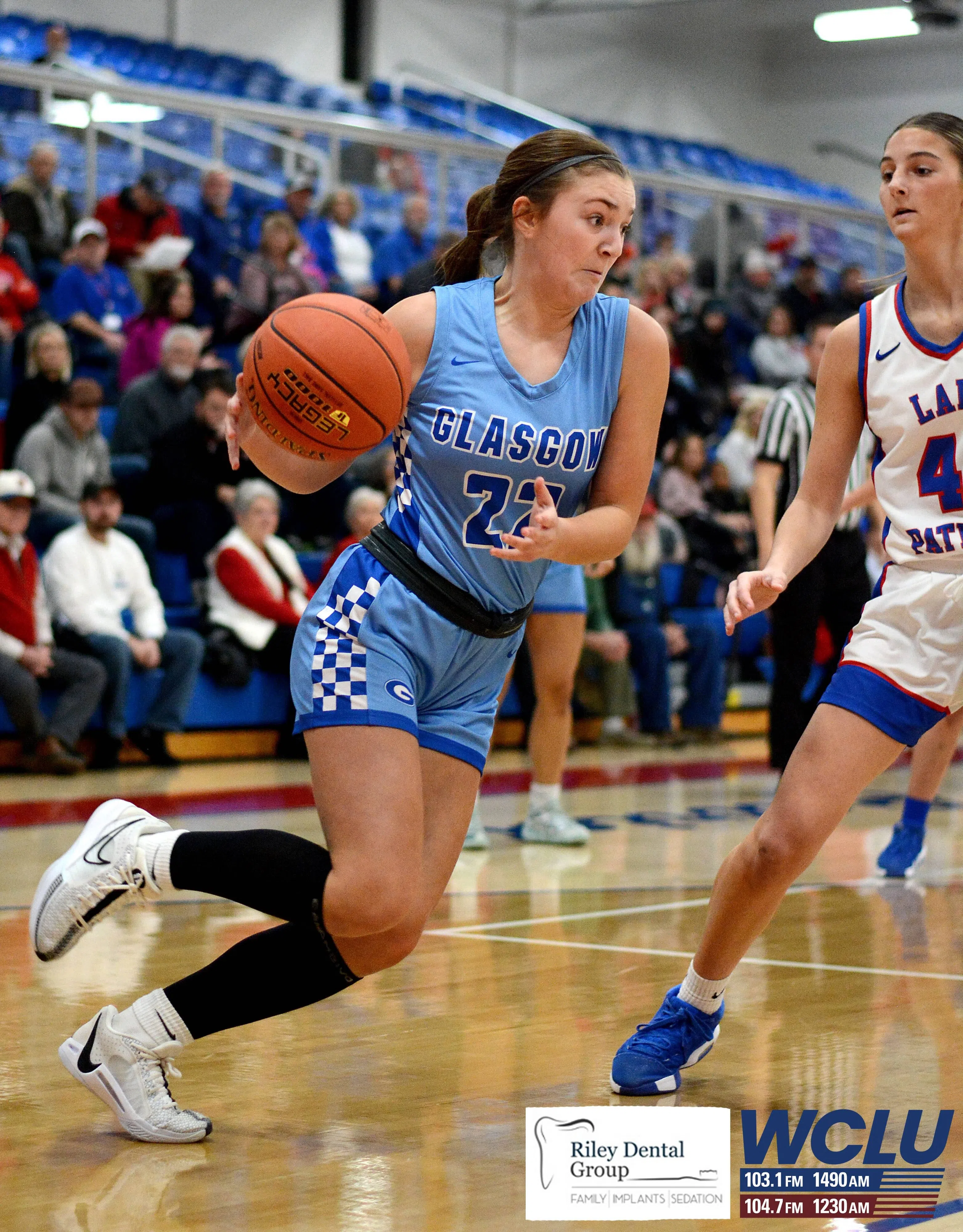 James Brown Jan 23, 2025 Glasgow's Karli Hagan drives down the baseline against Allen County-Scottsville. Glasgow lost, 70-52. John Brown/WCLU Sports