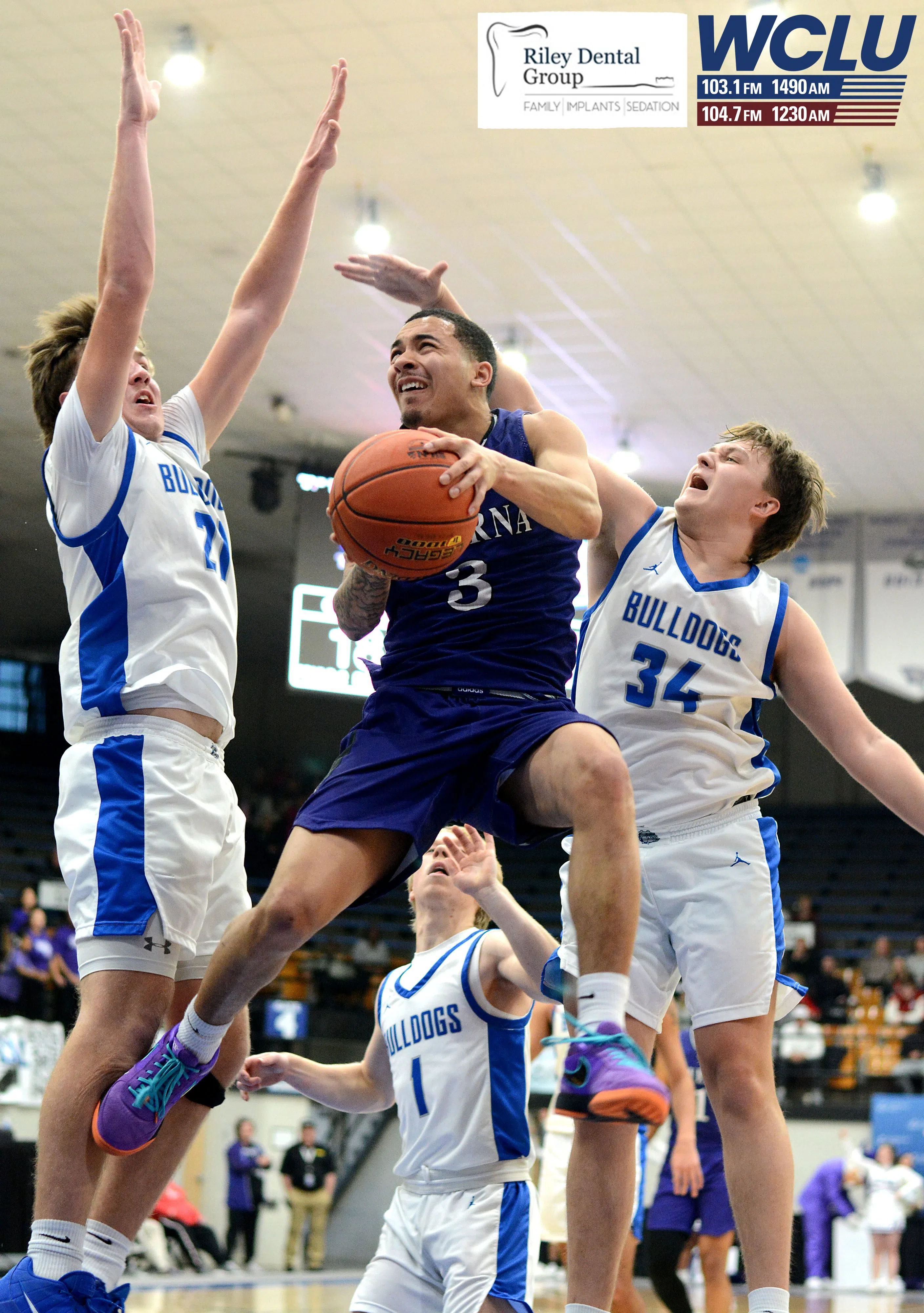 Caverna’s Gavin Lightning shoots a layup against Clinton County in the All “A” State Tournament. The Colonels won, 48-46. Auggie Brown/WCLU Sports Caverna’s Cortavian Maxey passes out to the perimeter against Clinton County in t...