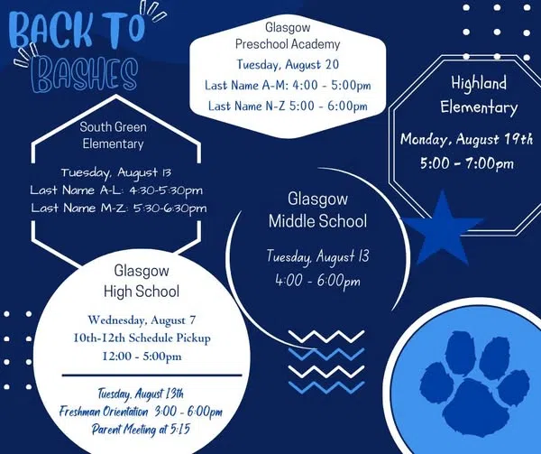 Glasgow Schools Orientations, Schedule Pickups and Back to School Bashes