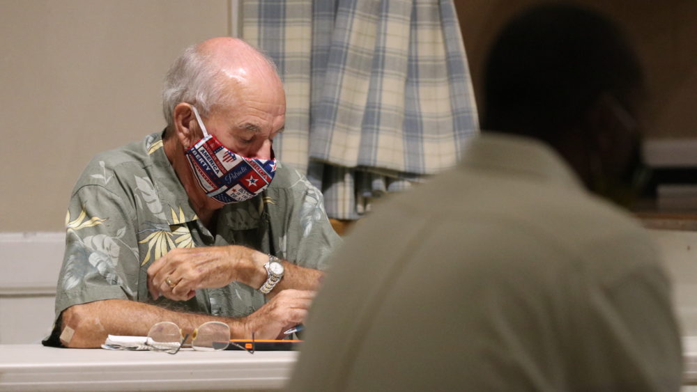Church selling raffle tickets on crochet blanket